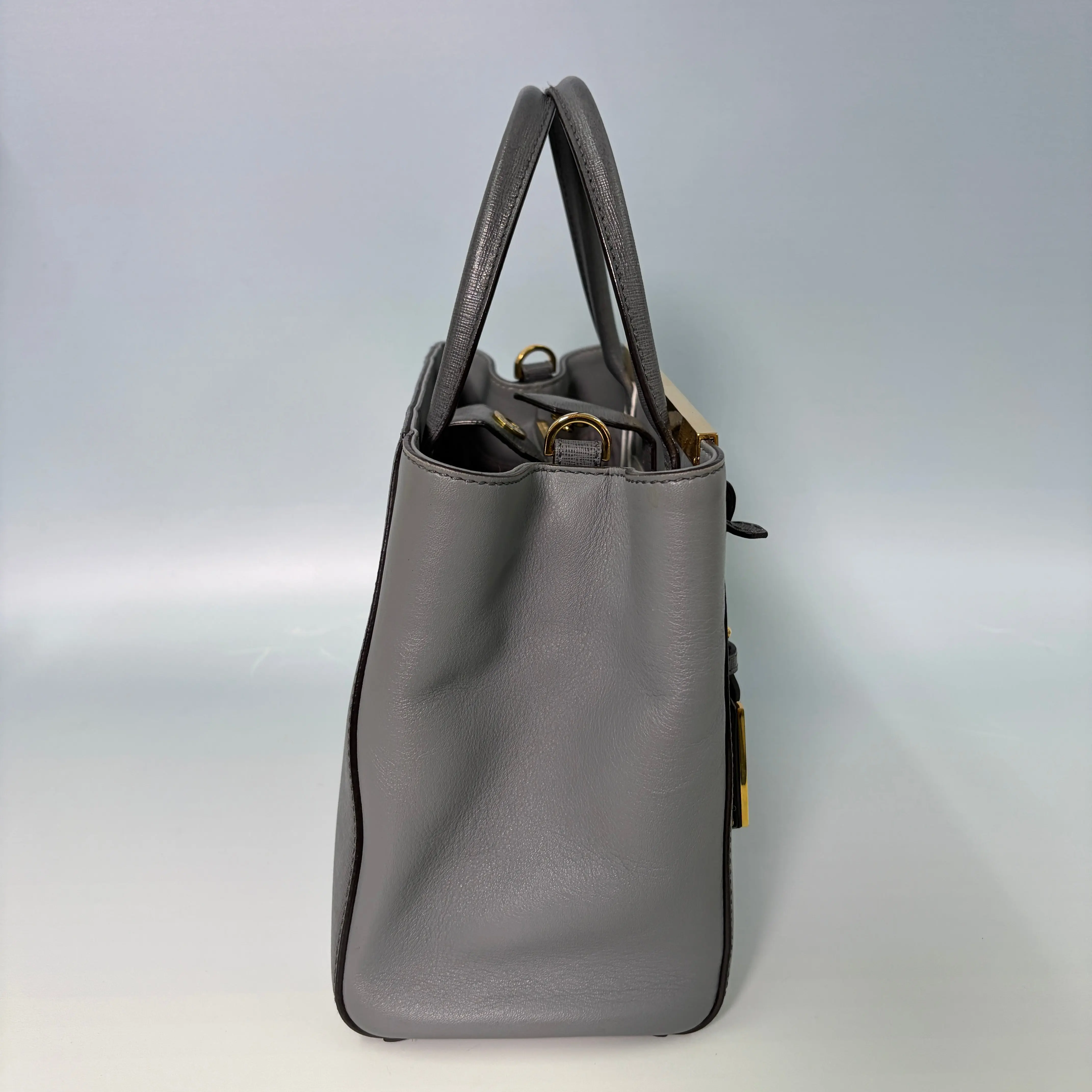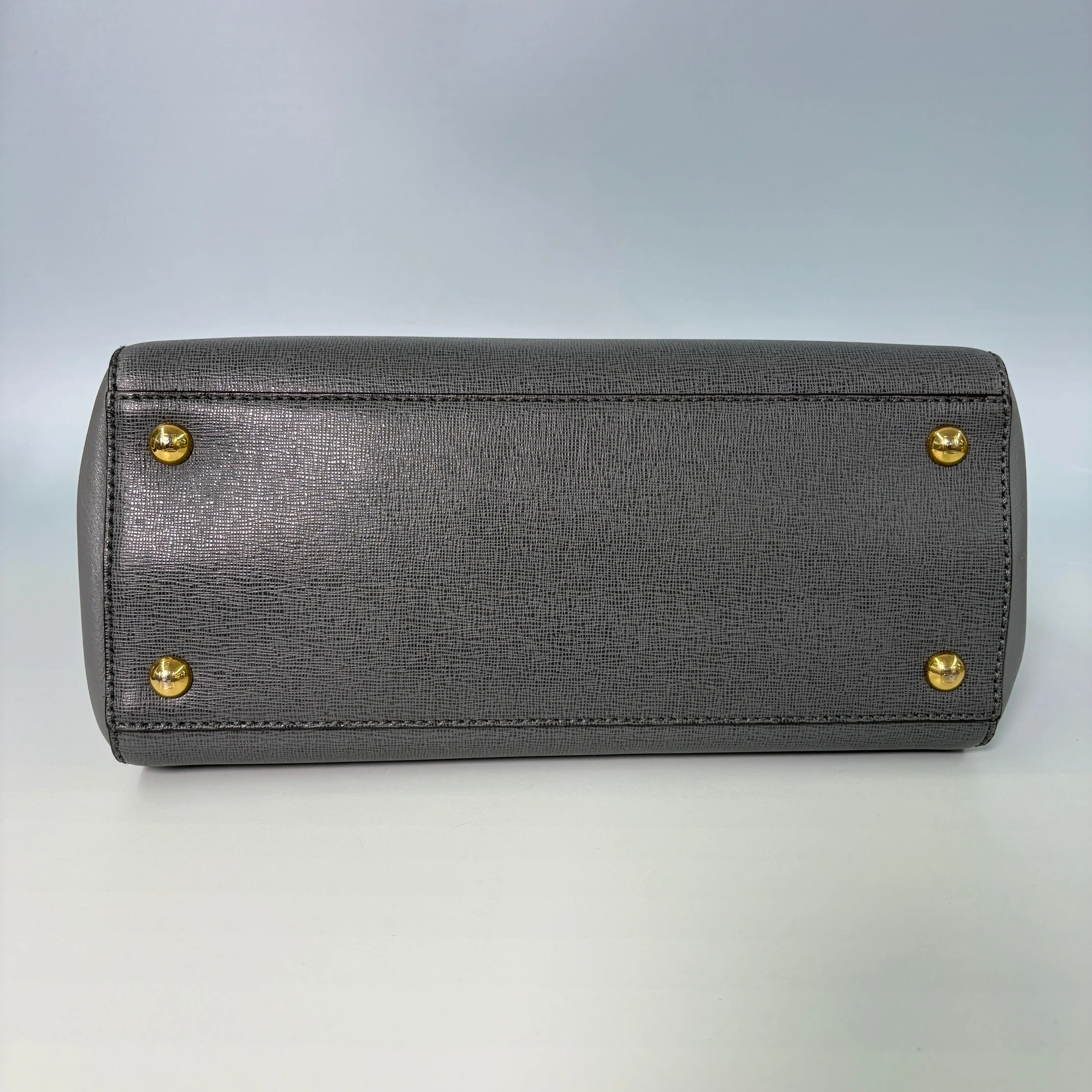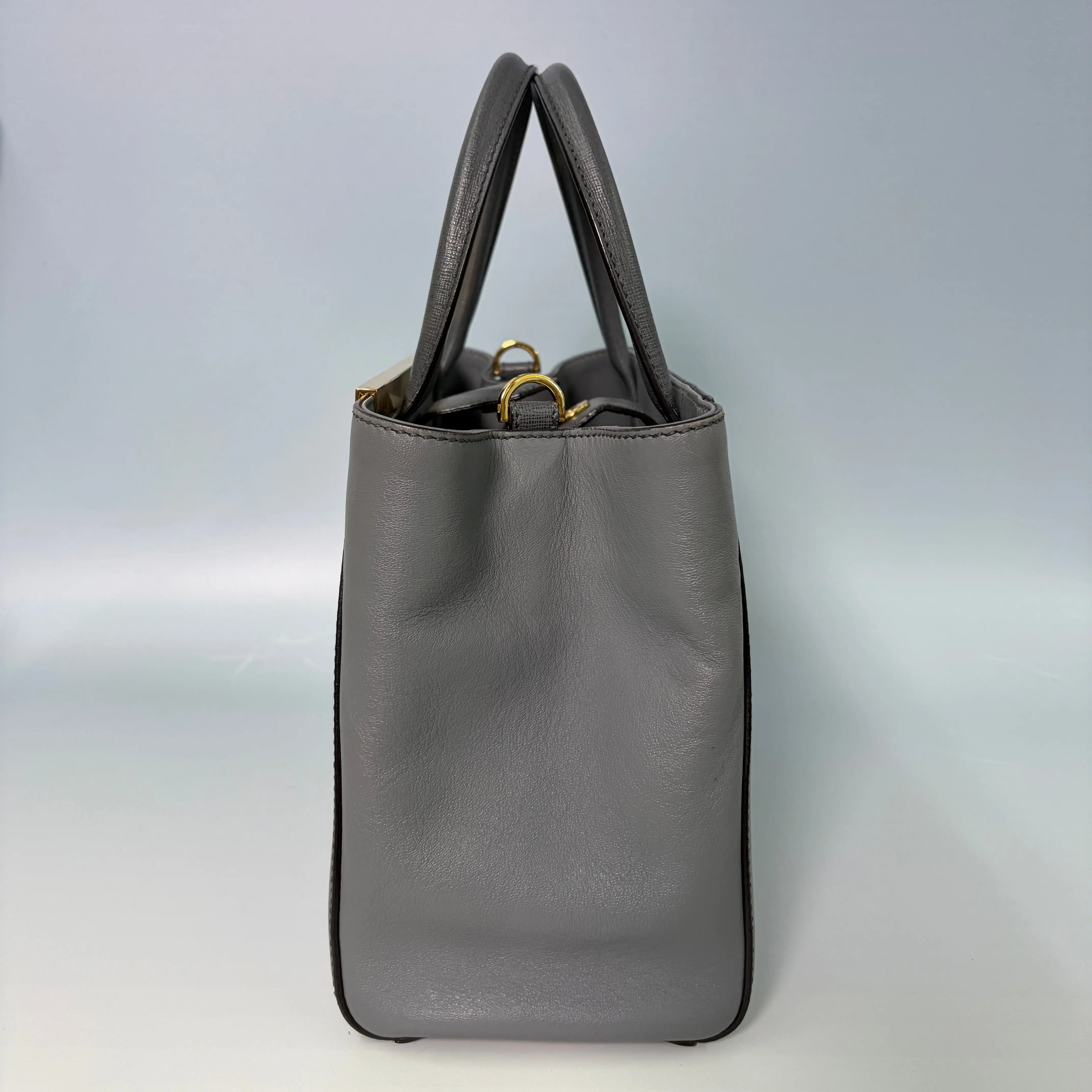 The Fendi 2Jours remains one of the most iconic silhouettes in the House's history, prized for its architectural balance and timeless sophistication. This petite edition is meticulously crafted from grey Elite calfskin, a textured leather renowned for its durability and resistance to wear.