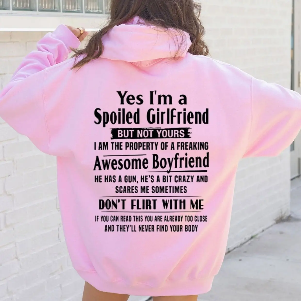 Funny Yes I’m a Spoiled Girlfriend Hoodie – Cute Relationship Graphic Pullover, Spoiled Girlfriend Gift for Women