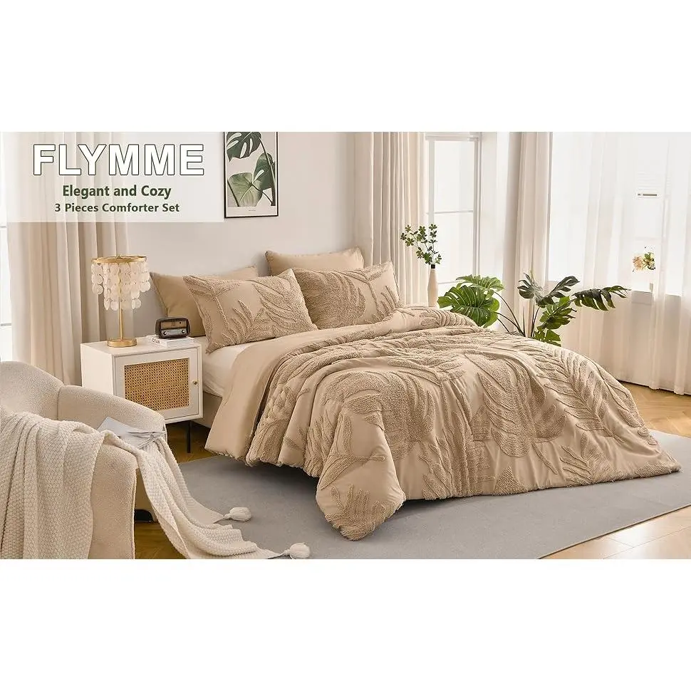 Stylish Botanical Design: The botanical comforter set features an elegant floral tufted pattern with palm leaves, adding warmth and visual appealbrings a touch of tropical charm to your bedroom, complementing any decor style effortlesslyPremium Comfort Material: The tufted comforter set is crafted from brushed microfiber with 100% polyester, offering superior softnessgentle on sensitive skinensures a peaceful sleep without rustling noise, ideal for year-round comfortDurability and Breathability: The leaves comforter set is filled with high-quality polyester microfiber, providing excellent durability, breathability, and softnesshidden stitching keeps the filling evenly distributed, ensuring it remains wrinkle-free and fade-resistantEasy Care: The bedding comforter comes vacuum-sealed for easy transportmachine washable in cold watertumble dry on low or gently fluff in the sun to restore its plush feelretains its like-new appearance after multiple washes, offering easy careSet Includes: This queen-size floral comforter set includes 1 comforter (90"x90") and 2 pillow shams (20"x26"), offering a complete and stylish bedding solution for your home