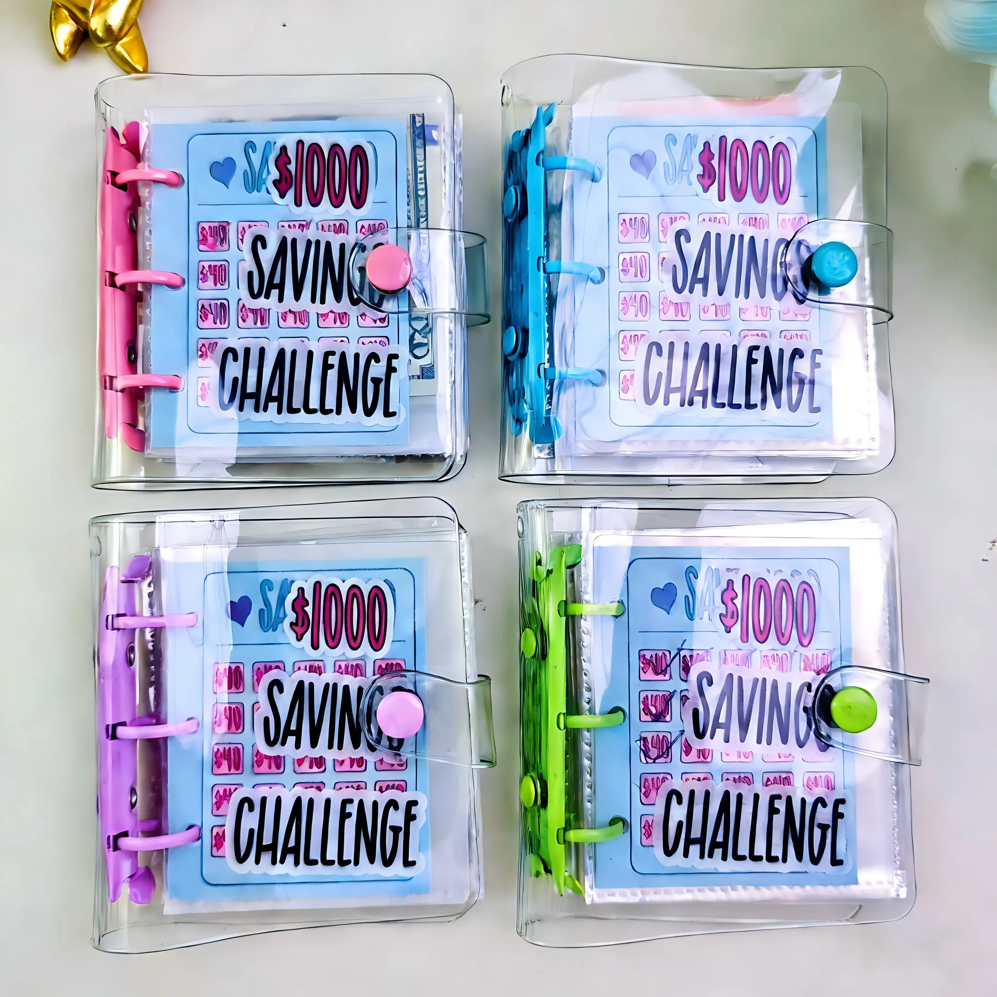 Mini Clear Savings Challenge Binder - Portable A6 Cash Envelope System Book for $1000 Goal