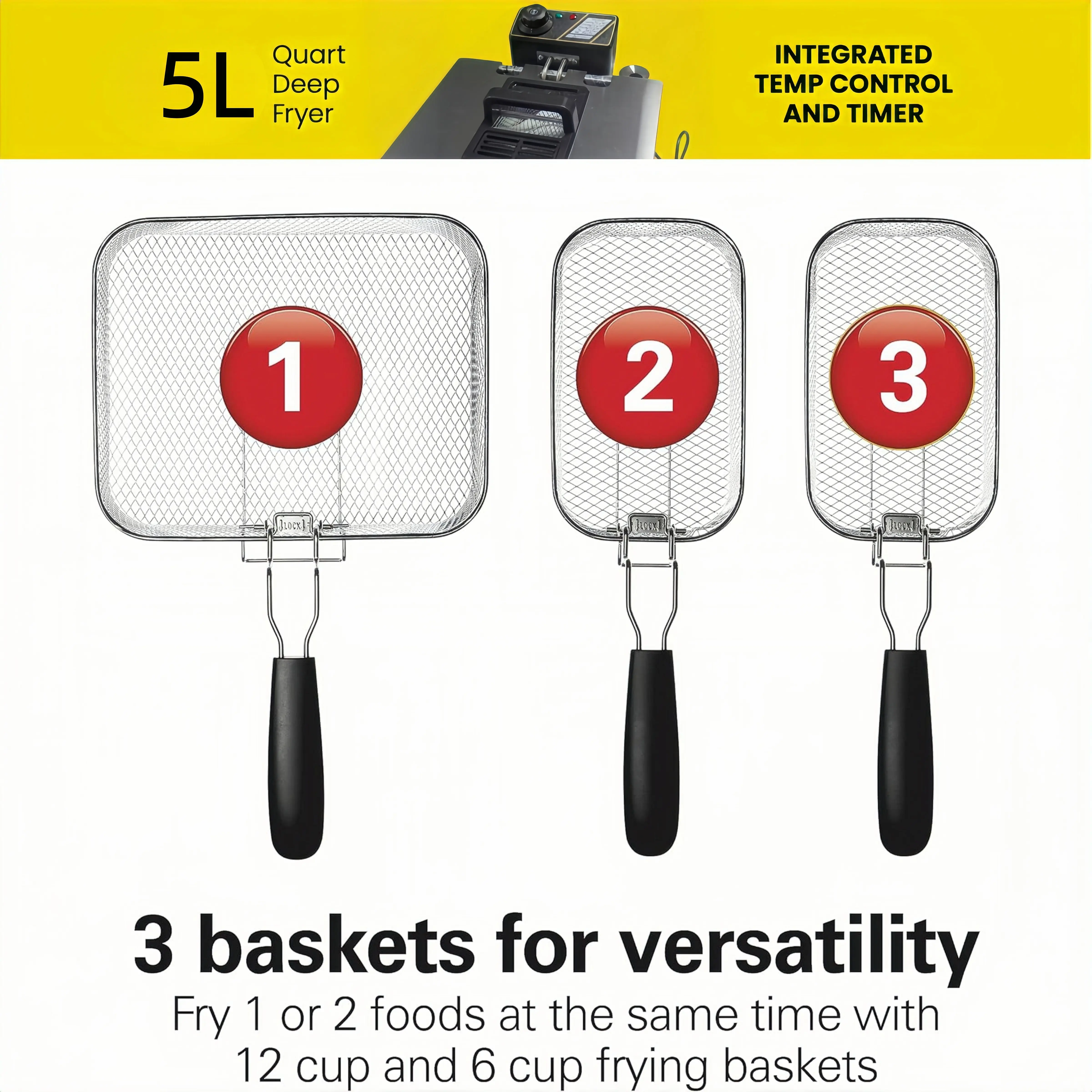 5 Liter/21 Cup Stainless Steel 1400 Watt Electric Fryer withRemovable Triple Plate Fryer, 5.3 Quart, Silver, Oil-Repellent Filter Cover, Easy to Clean, Ideal FriedChicken, Fish, Chips and Donuts, Ideal Gift HomeCookers griddle for home