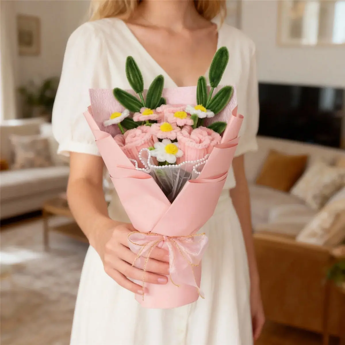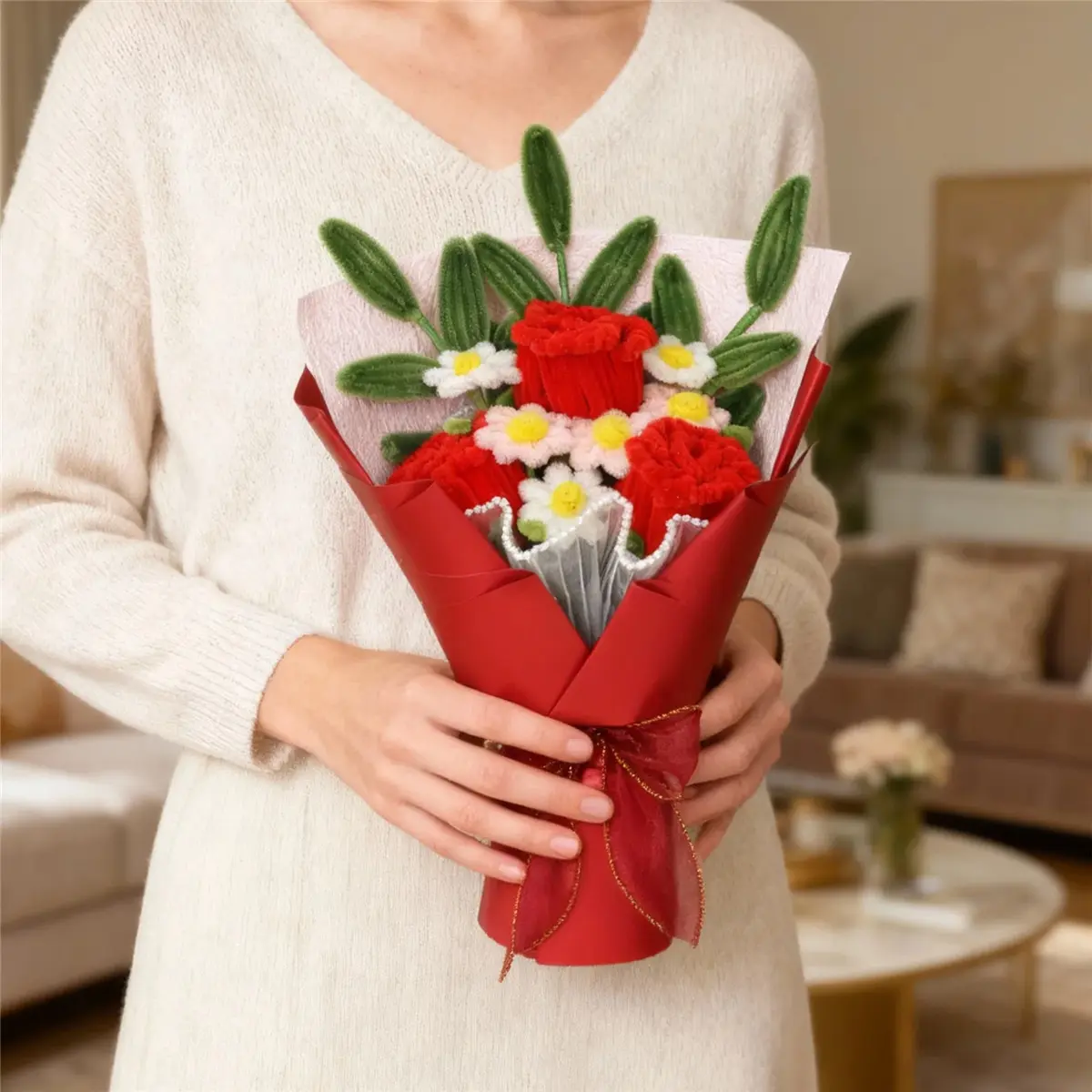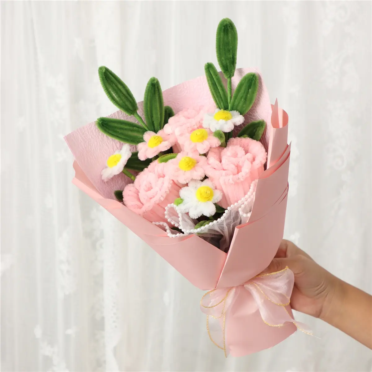 ·Perfect Gift Idea: This exquisite bouquet, handcrafted from pipe cleaner flowers, is ideal for Mother's Day or Thanksgiving. It features charming elements like roses and daisies, making it a thoughtful gift. 🎁
