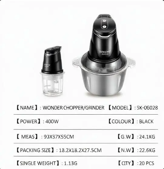 Elevate your kitchen with this versatile electric foodchopper! It features a powerful 300W copper motor, ensuring smooth operation for grinding meat, vegetables, and more. The set includes a stainless steel cup, lid, motor unit, blade, and instruction manual. Perfect for home use, it offers two speed settings for varied food textures. This compact, complete set is lightweight and space-saving, making it ideal for daily cooking needs.