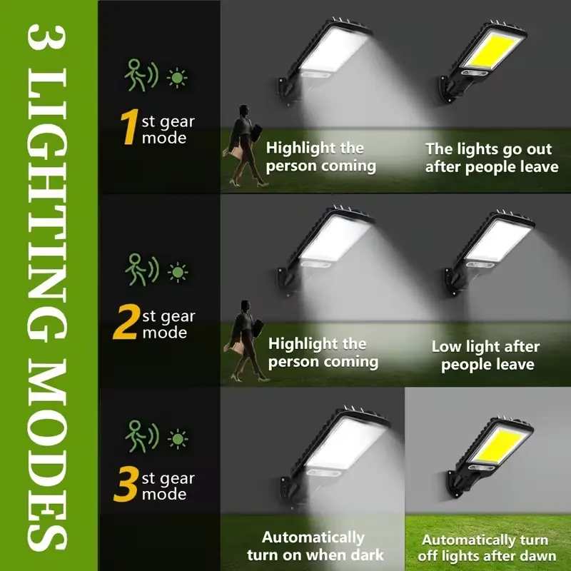 3 Modes & Remote Control:Outdoor solar LED light has 3 intelligent modes: