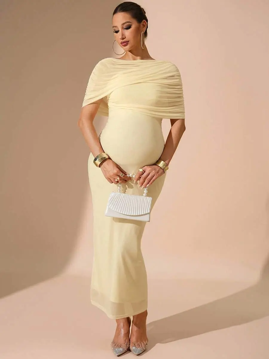 TAMALLA Autumn And Winter Maternity Dress Elegant Solid Color Fitted Maternity Dress For Party Pregnancy Clothing Maternity Dress For Photoshoot Butter Yellow Dress Yellow Maternity Dress Yellow Maternity Dress Baby Shower New Year Women's Clothes El