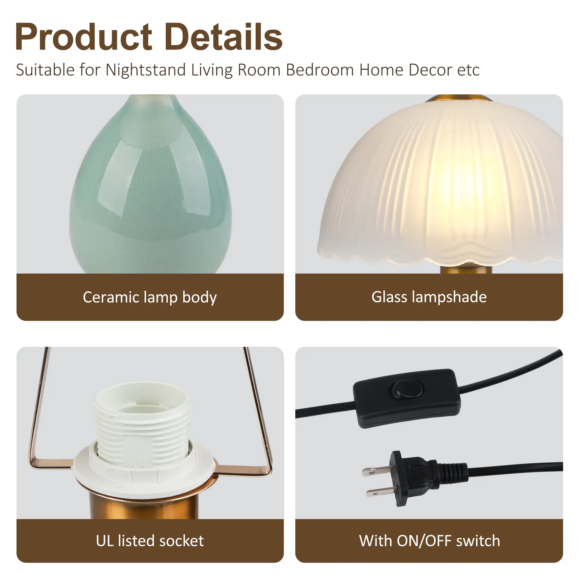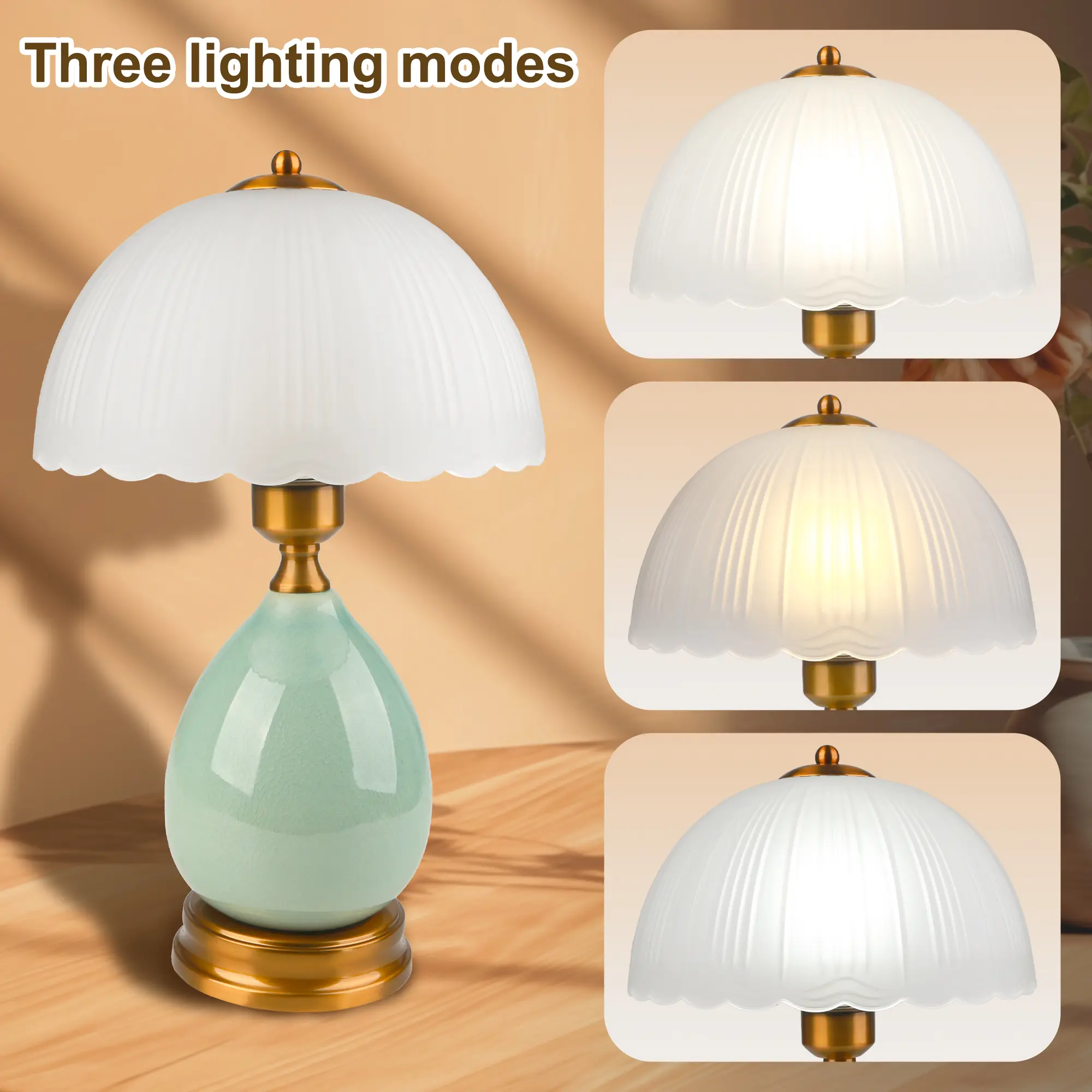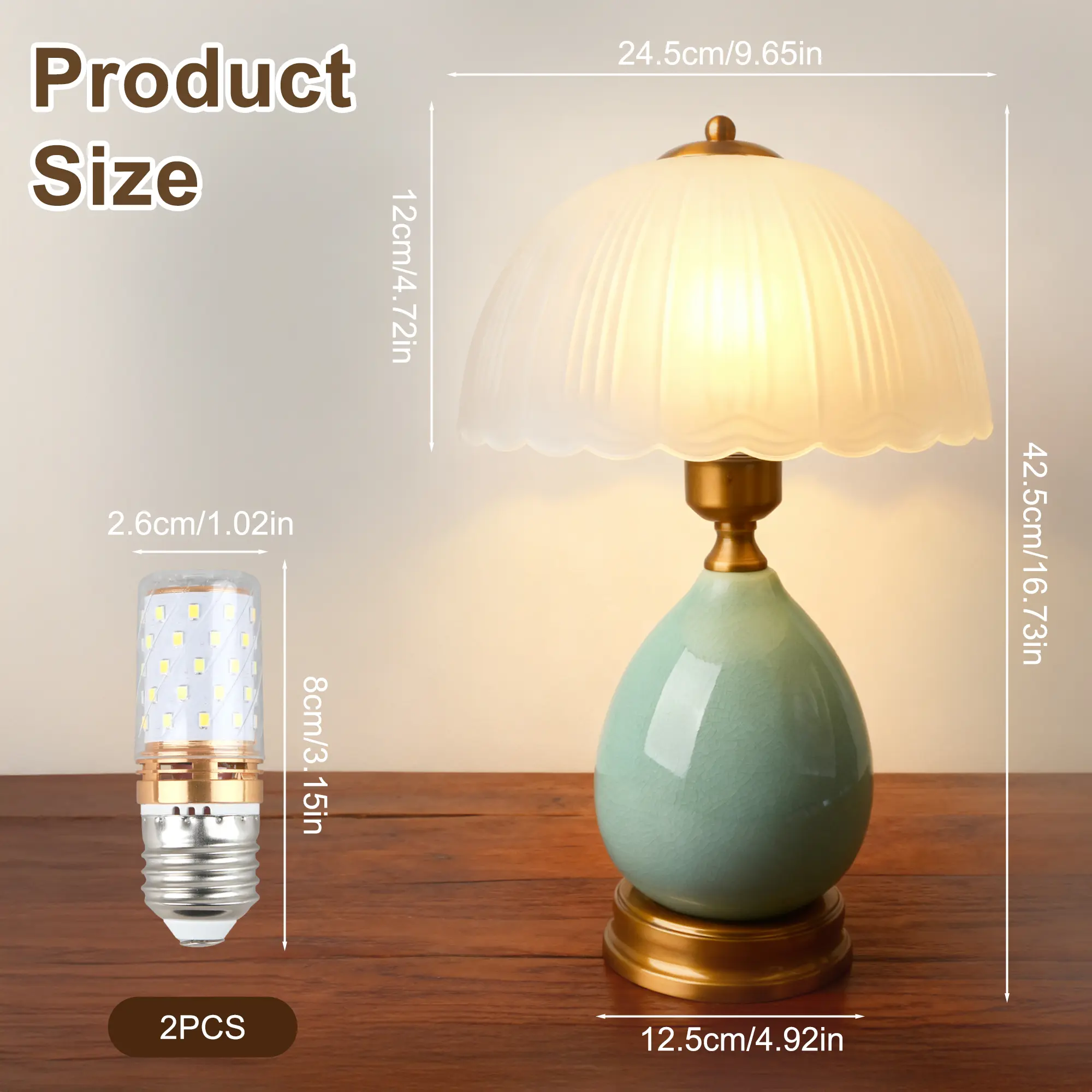 Table Lamps Ceramic Retro Lamp for Living Room,16.73" Modern Bedside Nightstand Traditional Lamps, Classic Chinoiserie Green Glass Lamp for Home (French Country)
