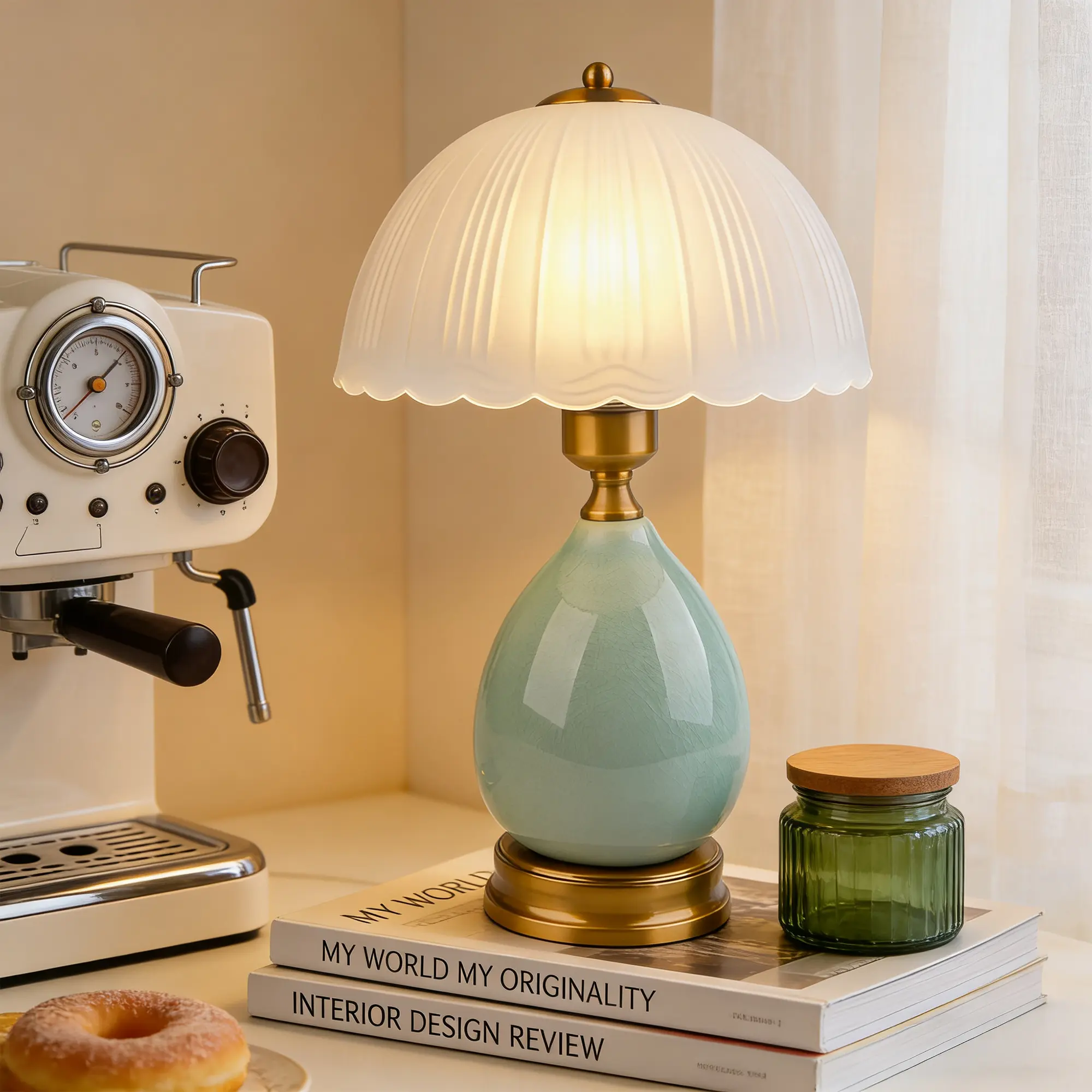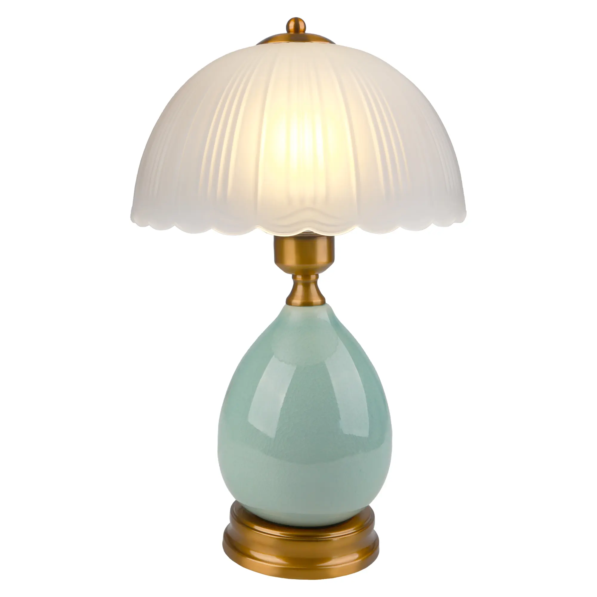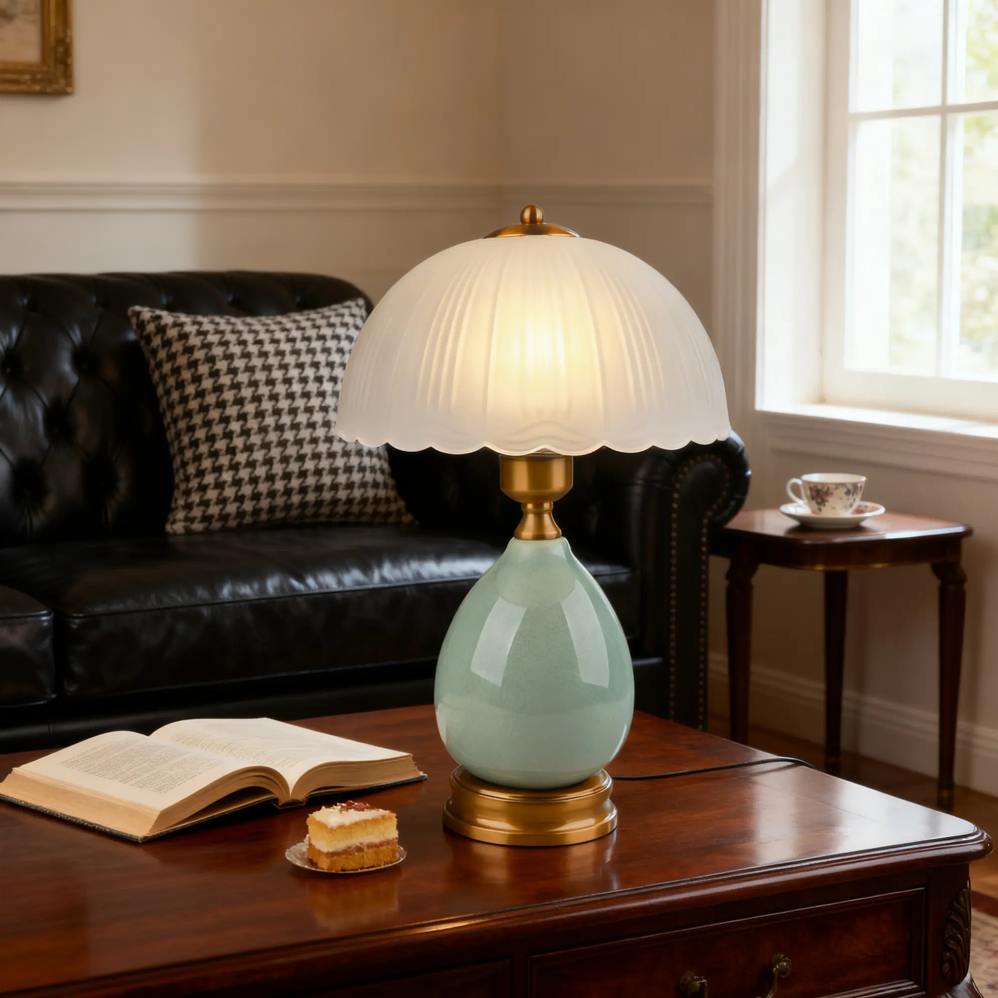Table Lamps Ceramic Retro Lamp for Living Room,16.73" Modern Bedside Nightstand Traditional Lamps, Classic Chinoiserie Green Glass Lamp for Home (French Country)