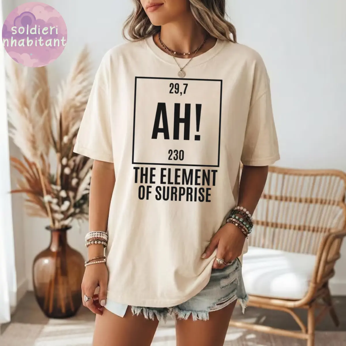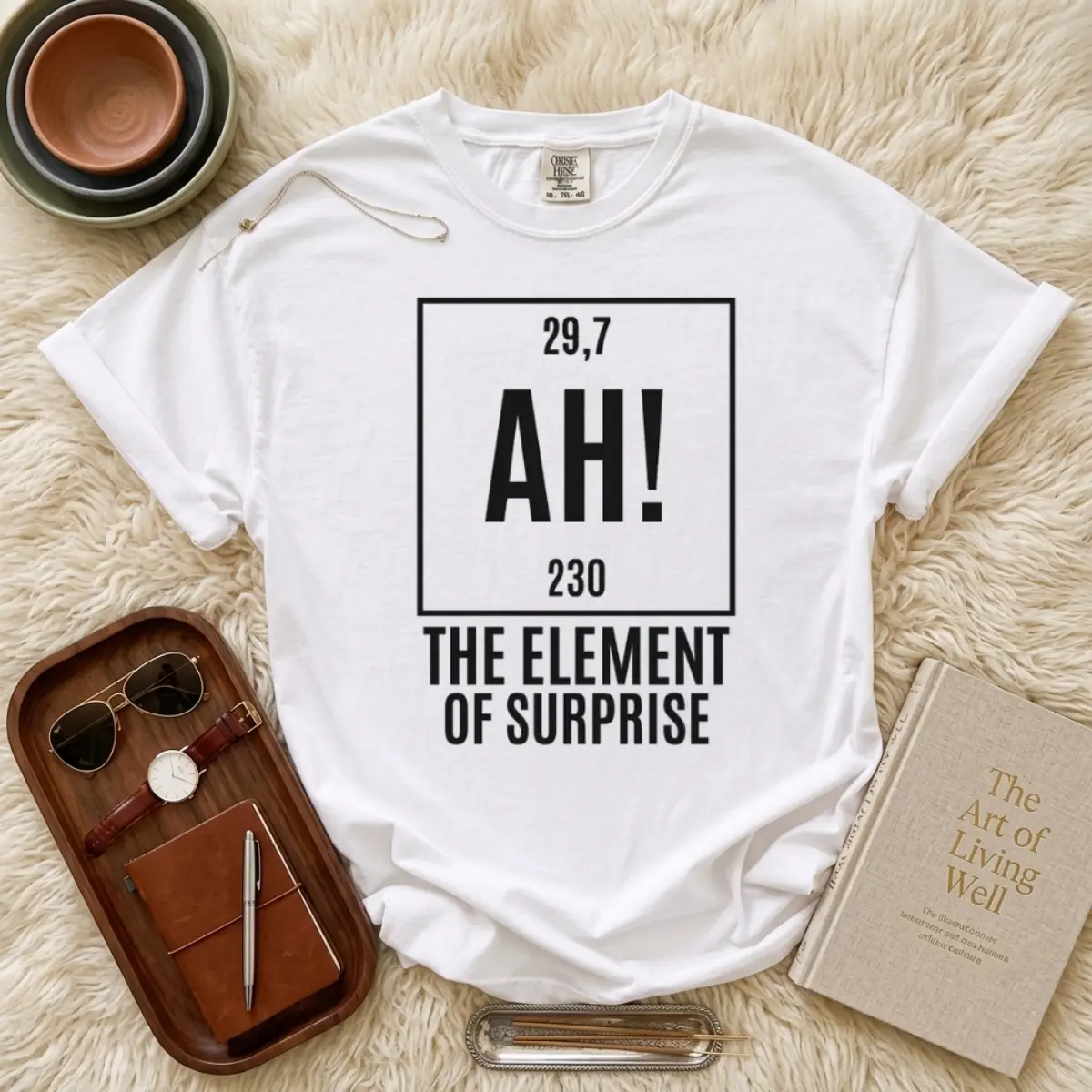 Project Hail Mary AH! Element of Surprise Ryland Grace Red T-Shirt, Chemistry Joke Tee, Science Humor Shirt, Nerd Gift, Geek Graphic Tee