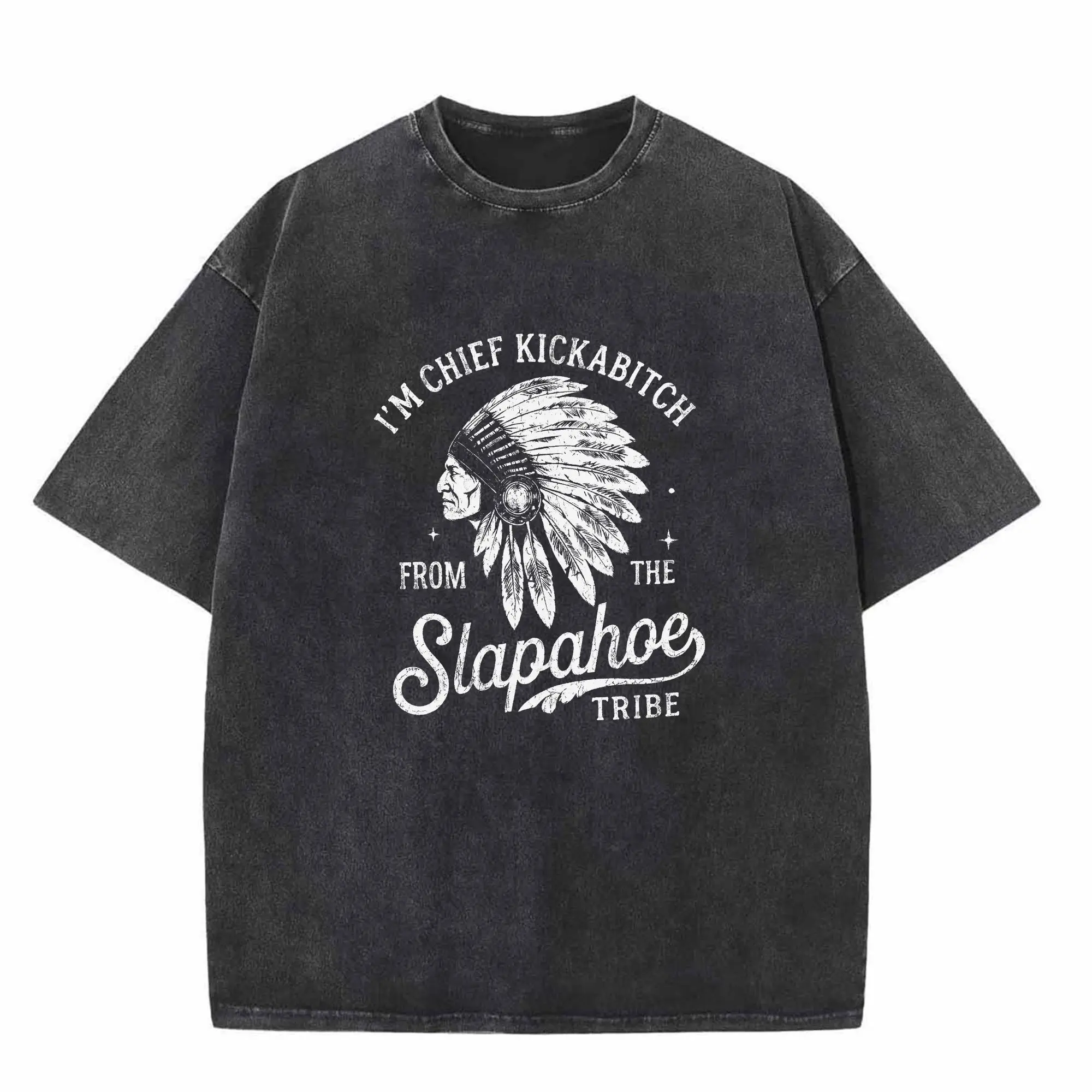 🌟 CHIEF KICKABITCH FROM THE SLAPAHOE TRIBE Washed T-Shirt 🌟