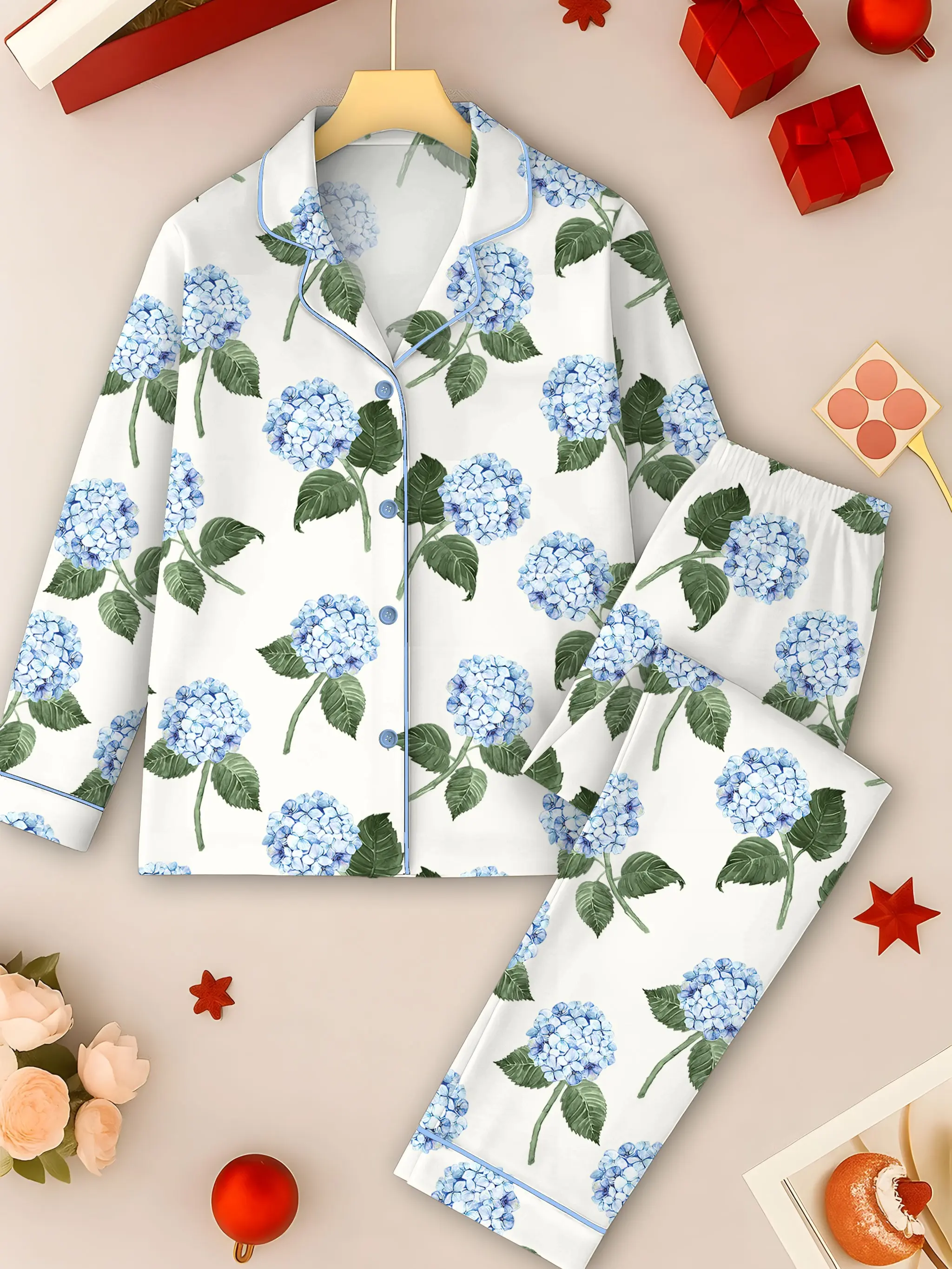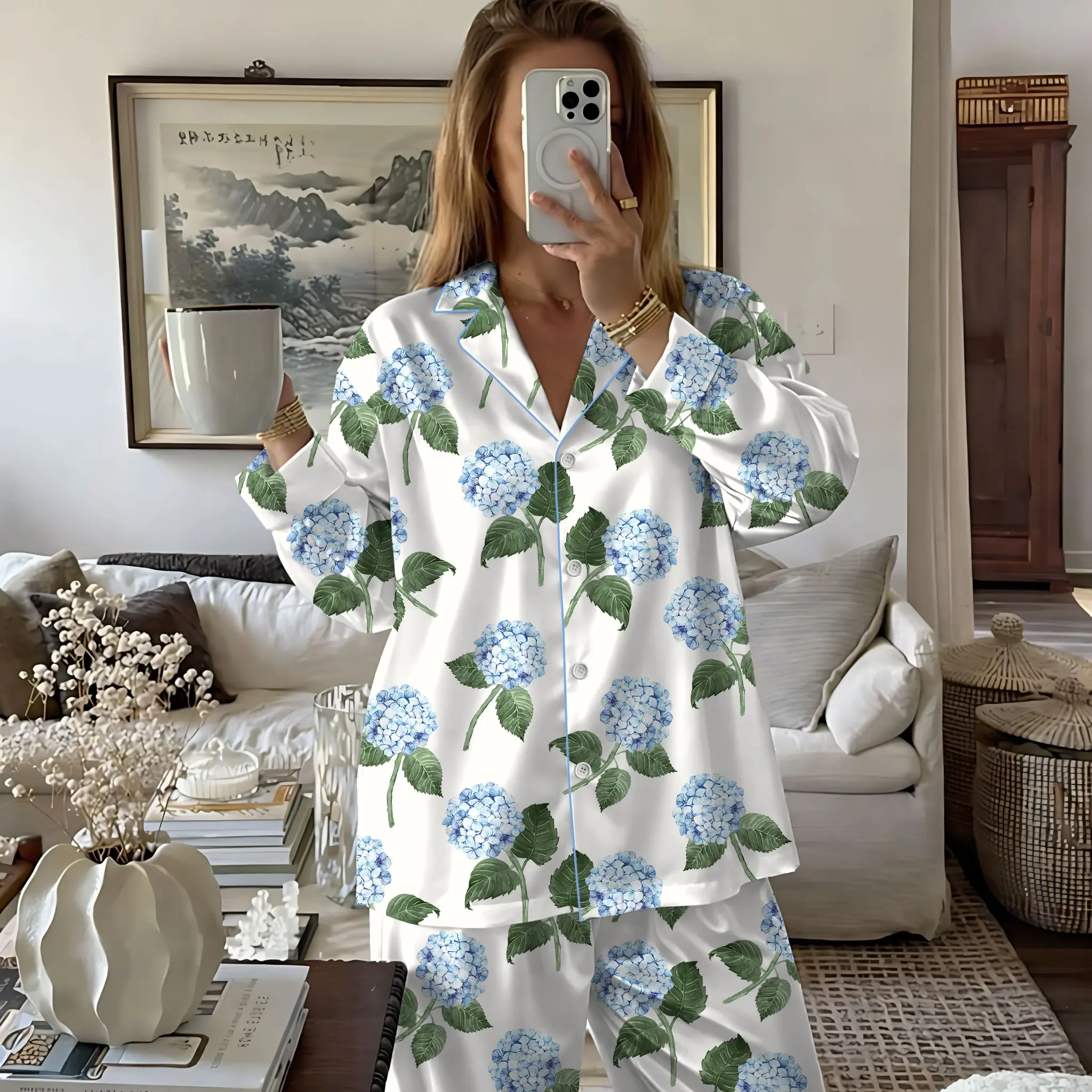 Women’s Hydrangea Floral Pajama Set – Soft, Lightweight & Comfortable