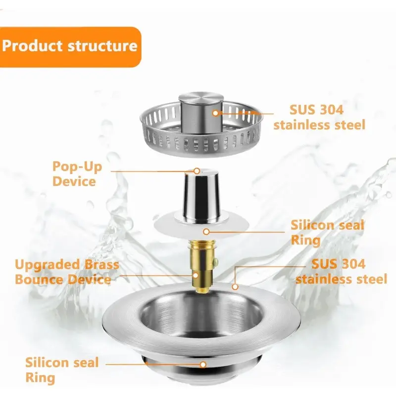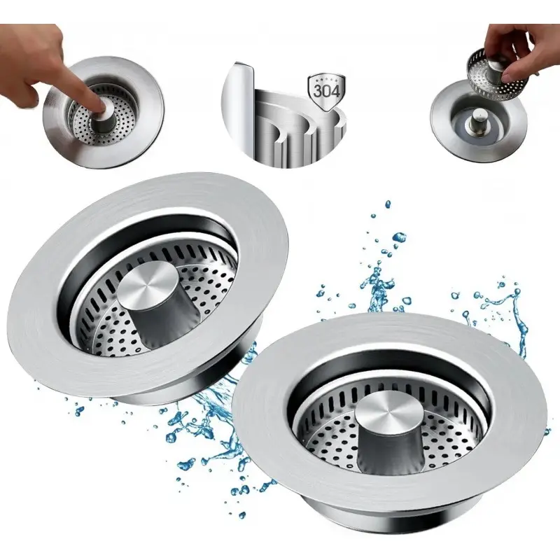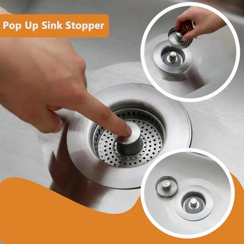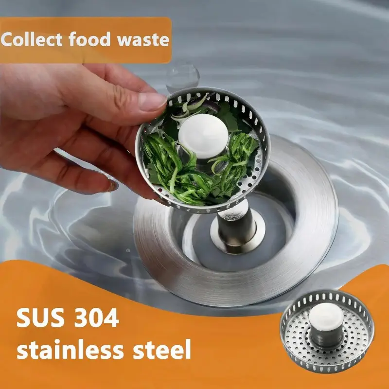 3-in-1 Design: Upgraded stainless steel kitchen sink strainer basket can easily filter kitchen scraps, will not clog the basket holes to ensure efficient drainage. Effectively prevents bad odors and ensures that your kitchen smells fresh and clean