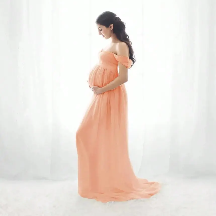 TAMALLA Off-Shoulder Mesh Sexy Maternity Dress Spring