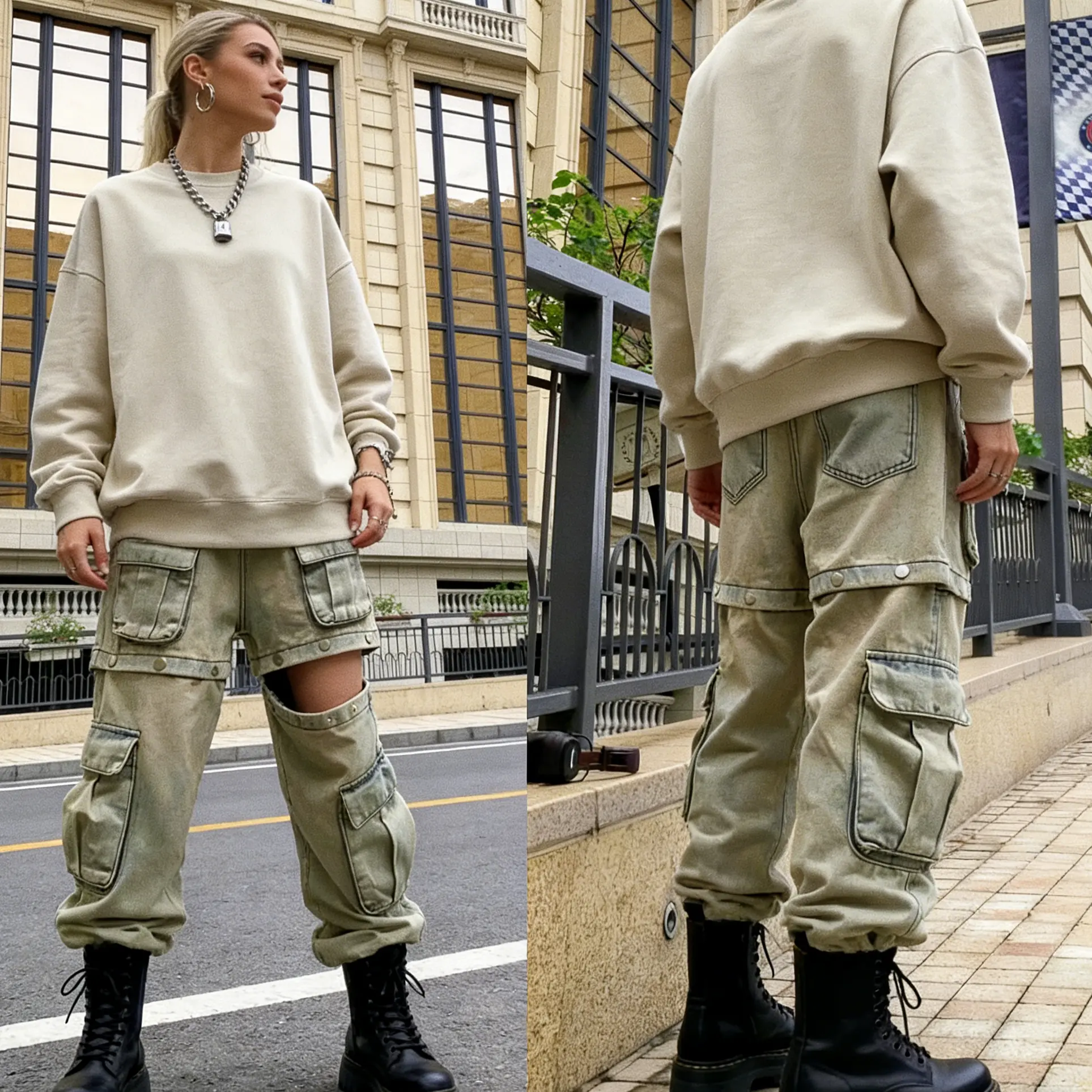 Viral 2026 Summer Trend! American Retro Cargo Jeans - Detachable 2-in-1 Denim Pants Streetwear