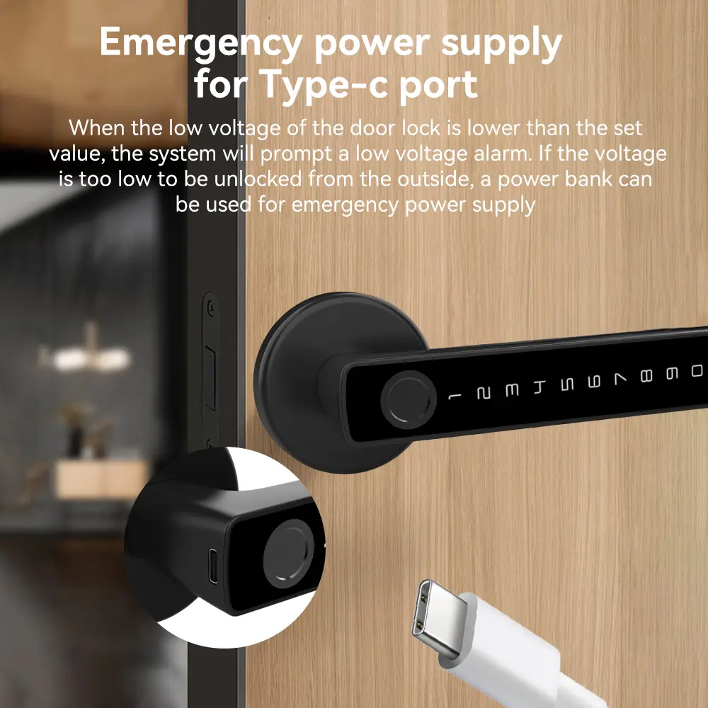 ·Type-C Emergency Power Supply: Low-voltage alarm & power bank charging port for emergency unlock when battery is low