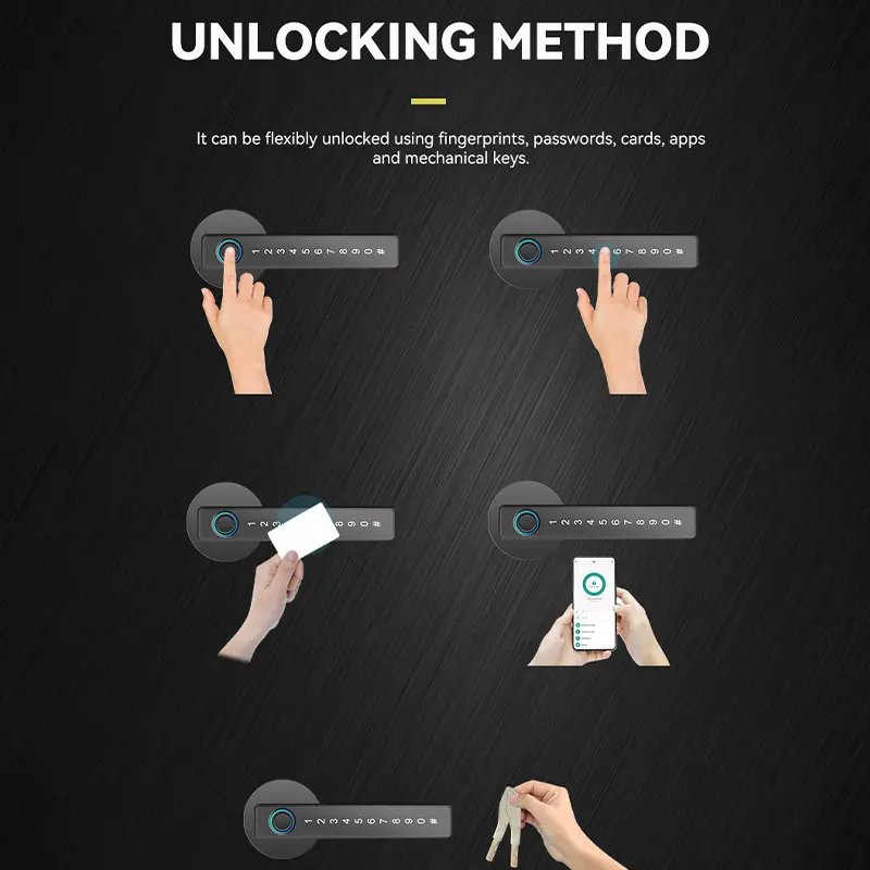 No more struggling with keys or access cards! This smart lock supports multiple unlocking ways to fit your daily needs: