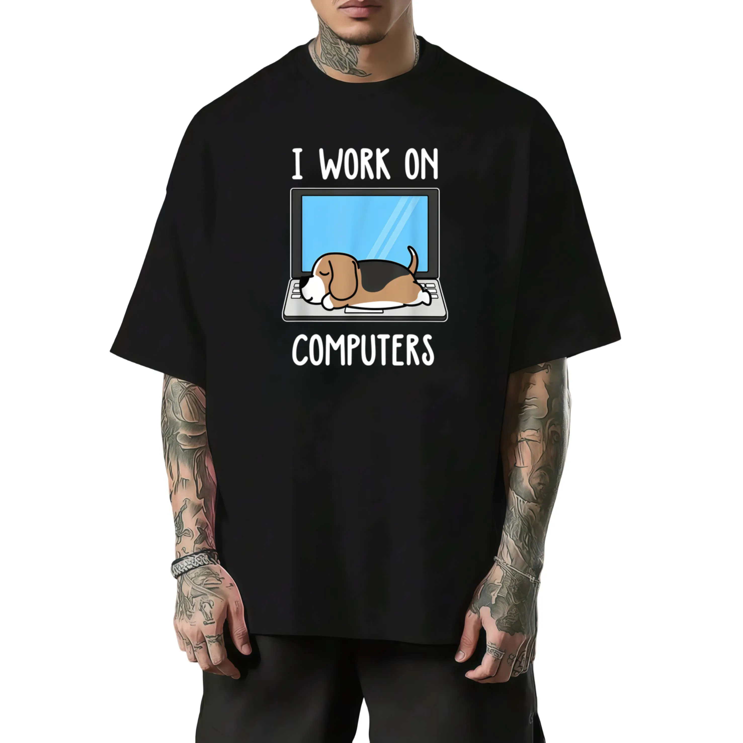 Casual Loose-Fitting T-Shirt for Dog Lovers Featuring a Sleeping Beagle Design