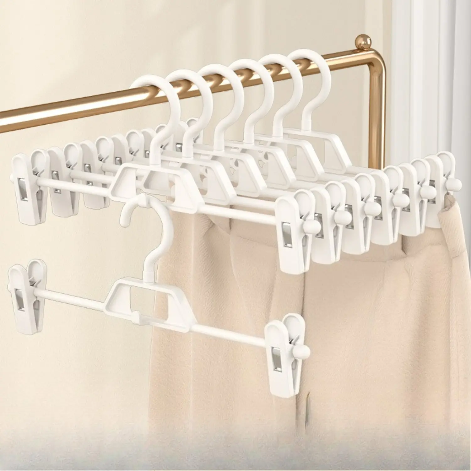PrimPick 10pcs Adjustable Non Slip Pants Clips Clothes Drying Rack Space Saving Household Hanger for Indoor and Outdoor Use Plastic Design for Trousers and Shorts