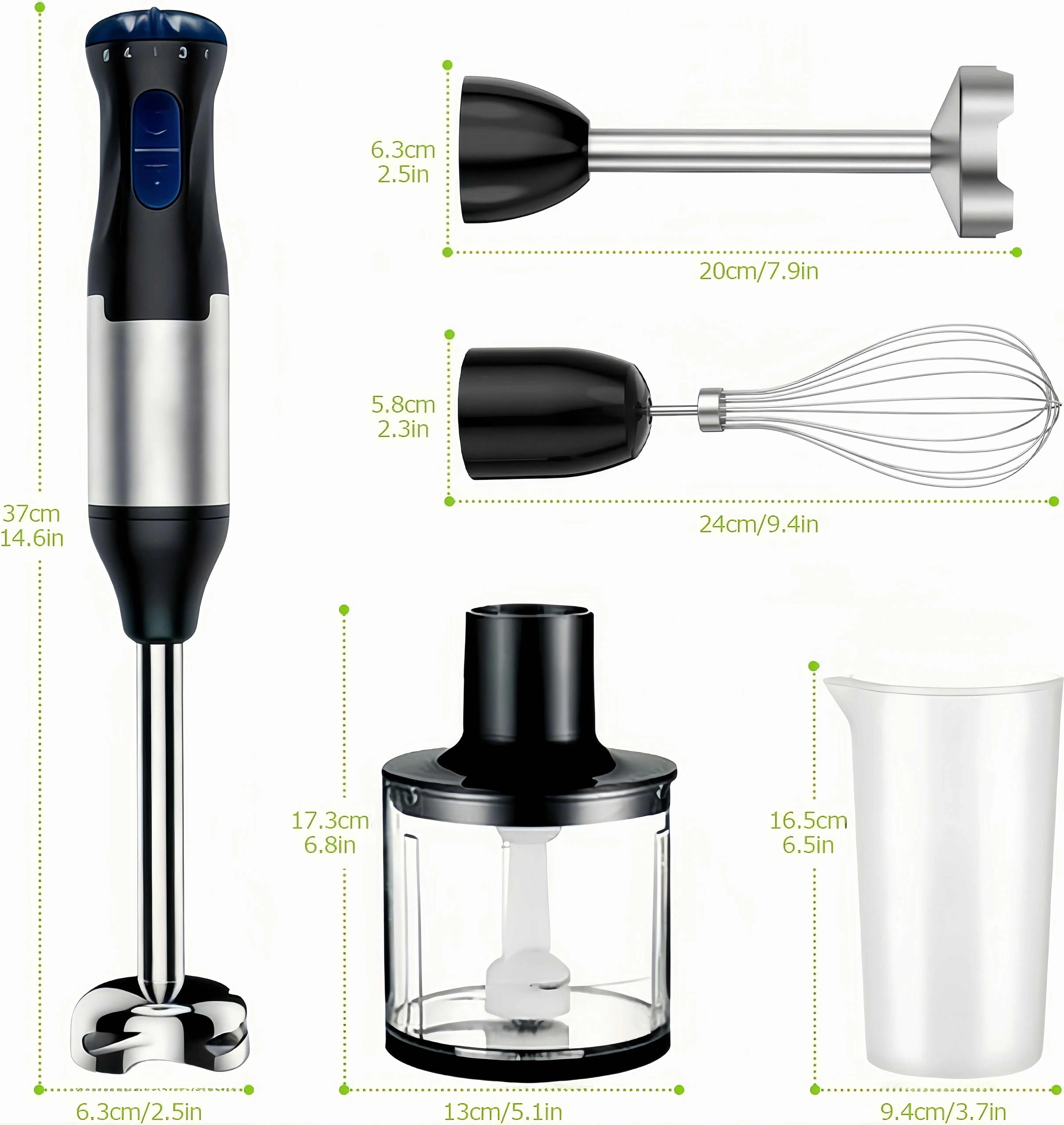 Immersion Hand Blender, 4-in-1 8-Speed ImmersionBlender with 500ml Food Grinder, 700ml Container, Multi-Scenario Use for Baby Food Purees, Smoothies, Sauces,Creams, Eggs and Soups Great Gift for Friends andFamily Electric Cooker with Auto Shut-Off