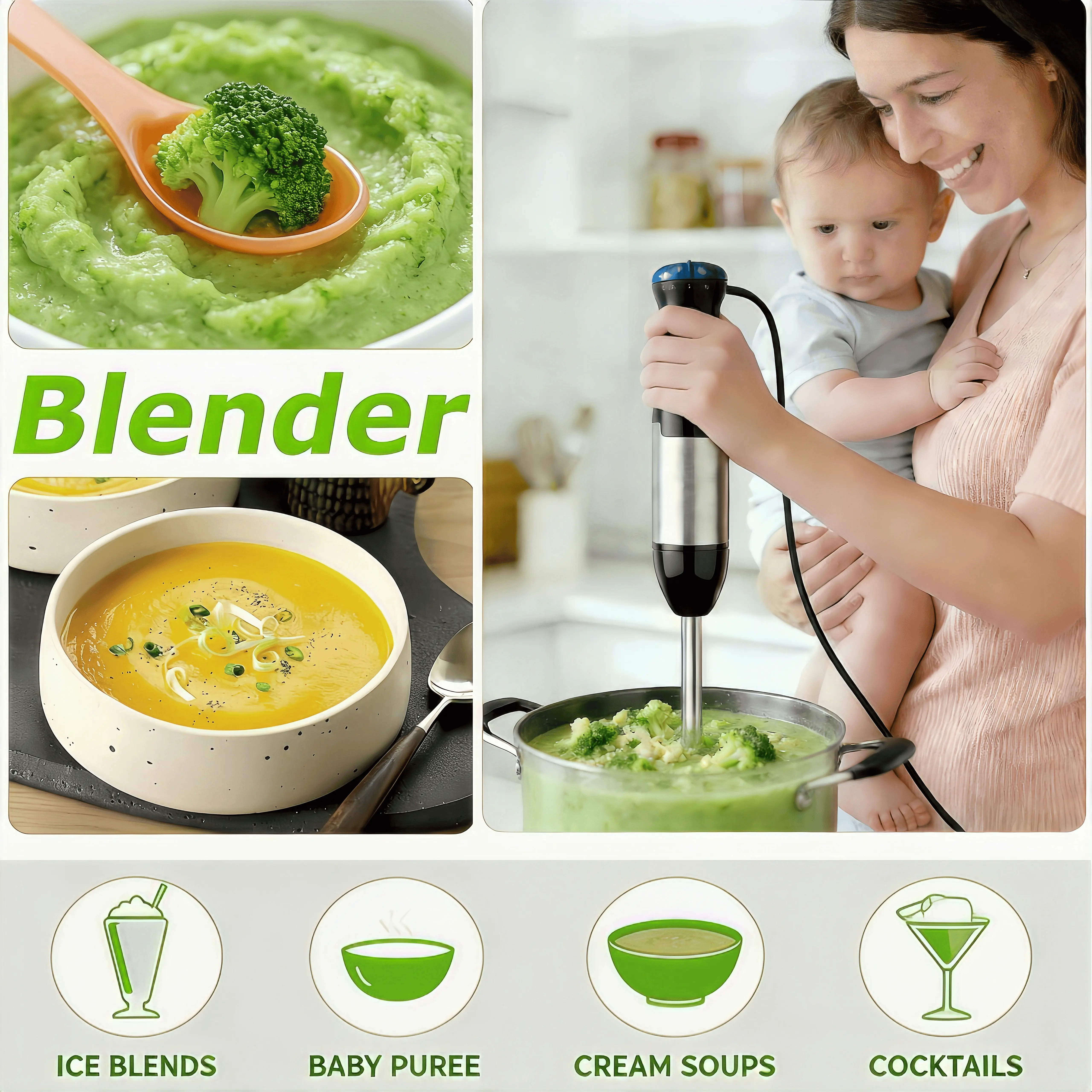 This 4-in-1 immersion portable blender is ideal for smooth soups and drinks. It's easy to handle for daily recipes and effortlessly blends ingredients. This blender is a kitchen essential for creating creamy soups and smooth drinks. ️