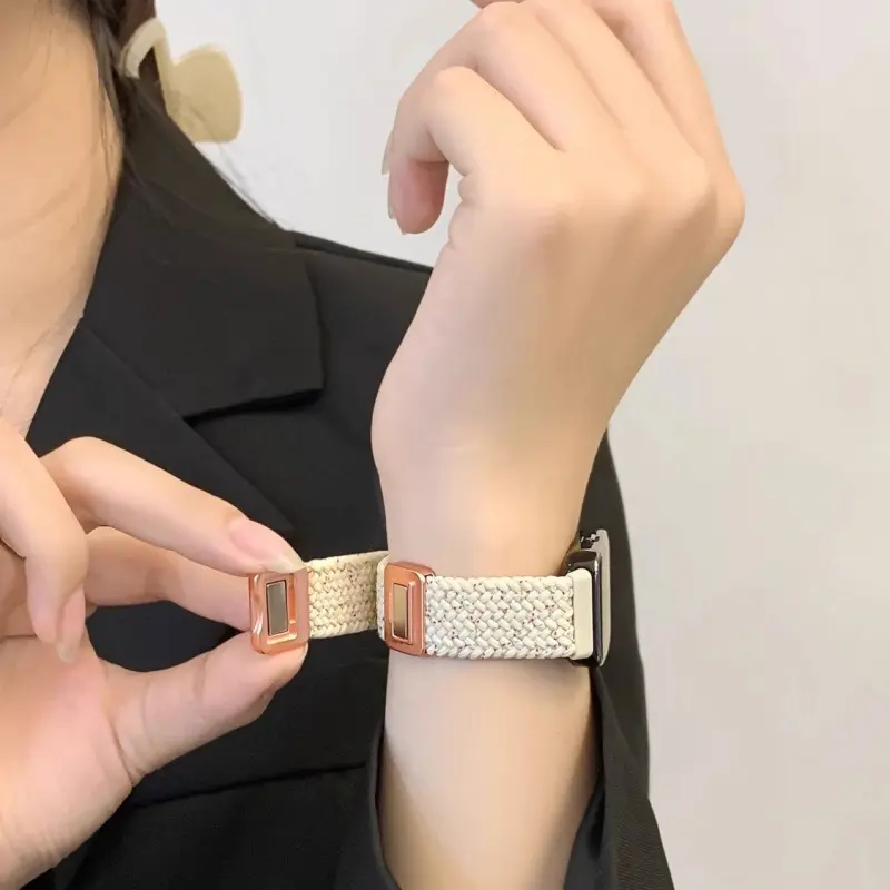 Braided Rose Gold Magnetic Buckle Strap - Cream Sa