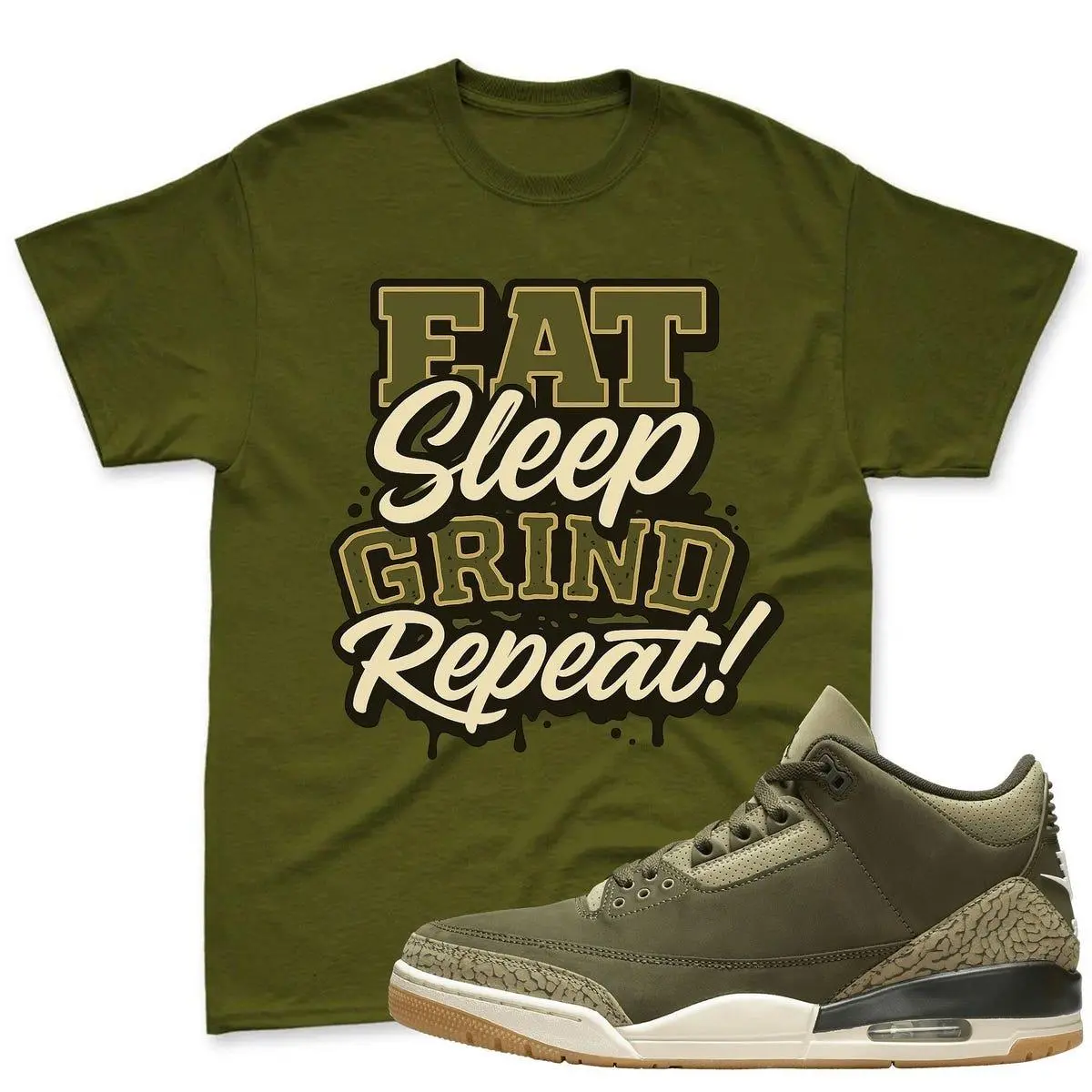 Fat Sleep Shirt To Match Jordan 3 Family Affair Medium Olive, Jordan 3 Family Affair Olive Sneaker Mactching Shirt, Jordan Match Shirt