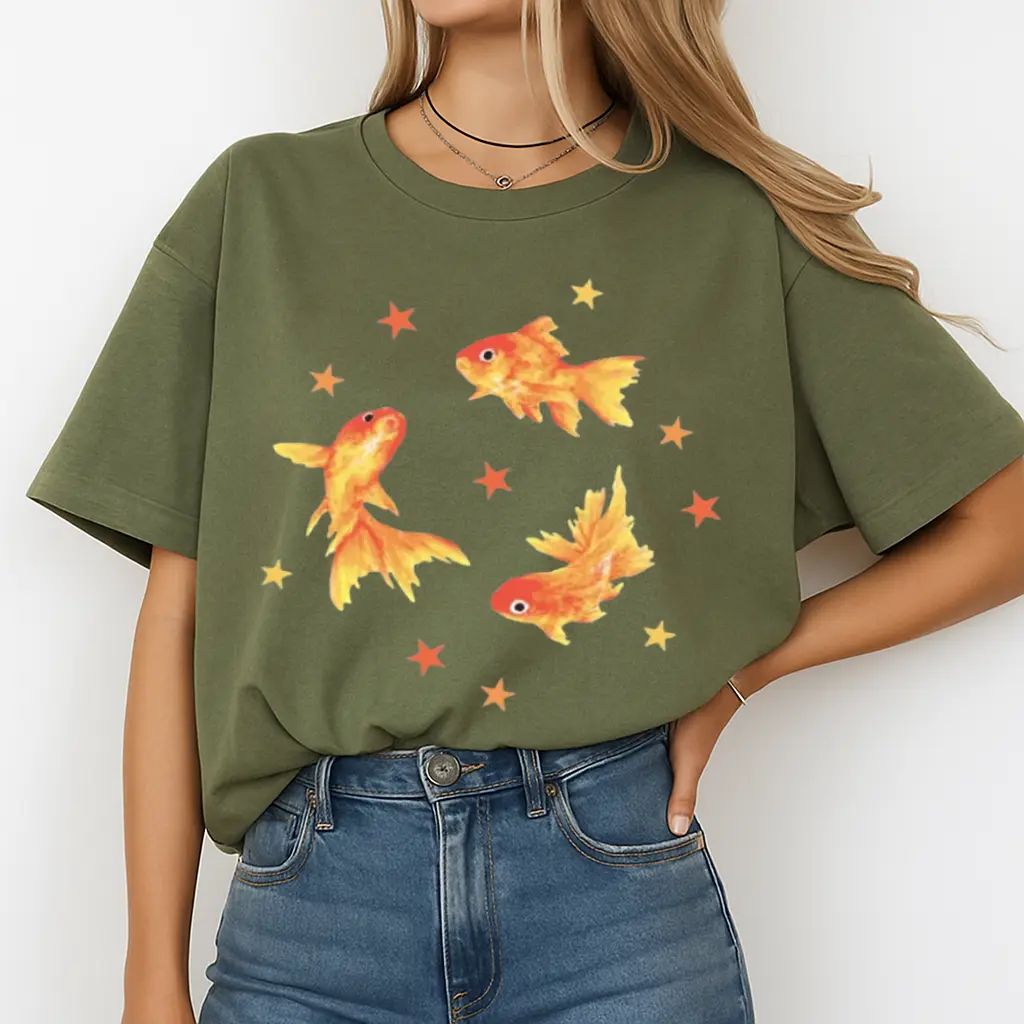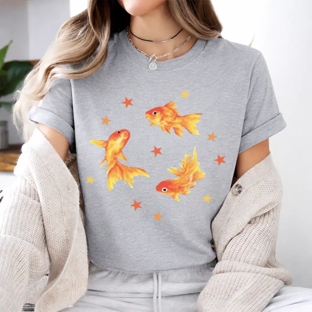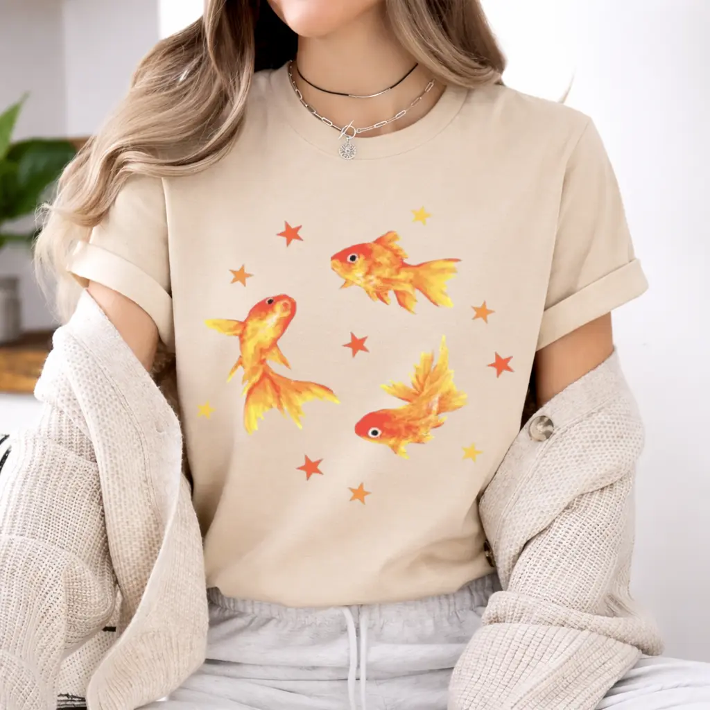 ·Retro Cool Vintage Top: Dive into the nostalgic vibes with this Y2K Goldfish Star Aesthetic T-Shirt. Perfect for those who love a grunge beachy style. This tee is a must-have for your retro wardrobe.