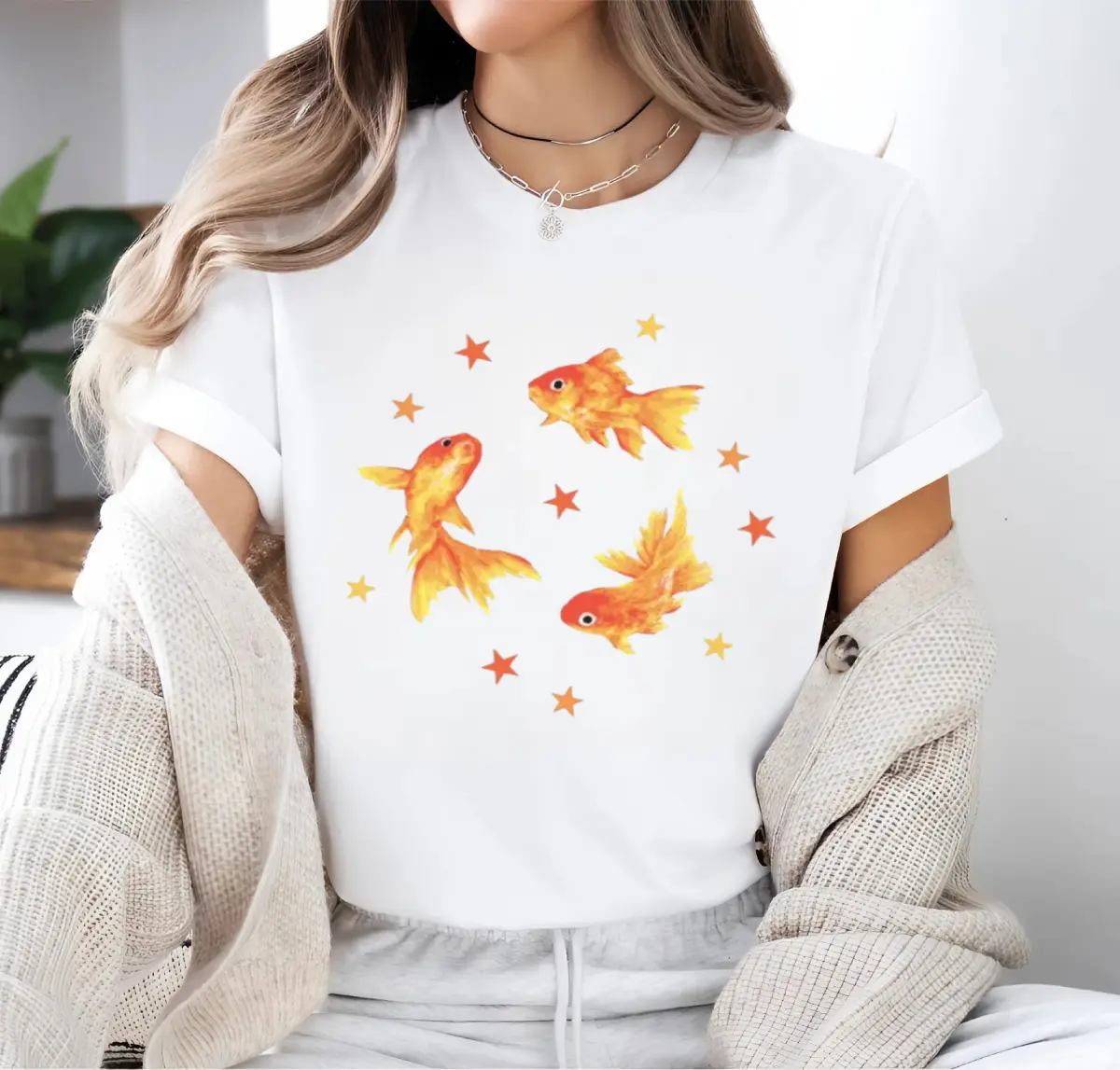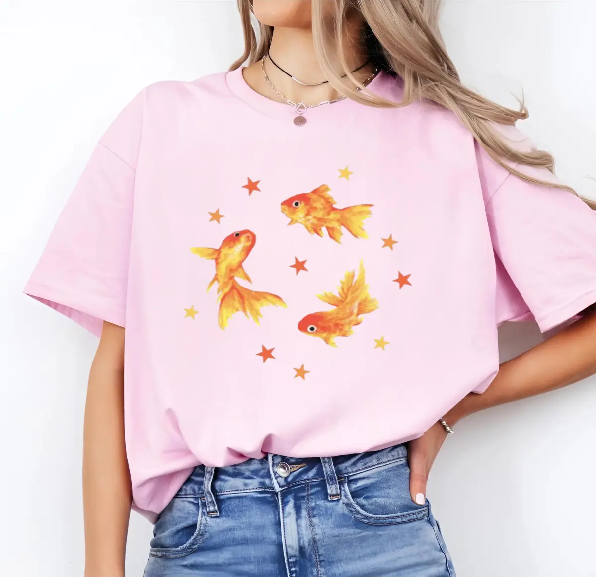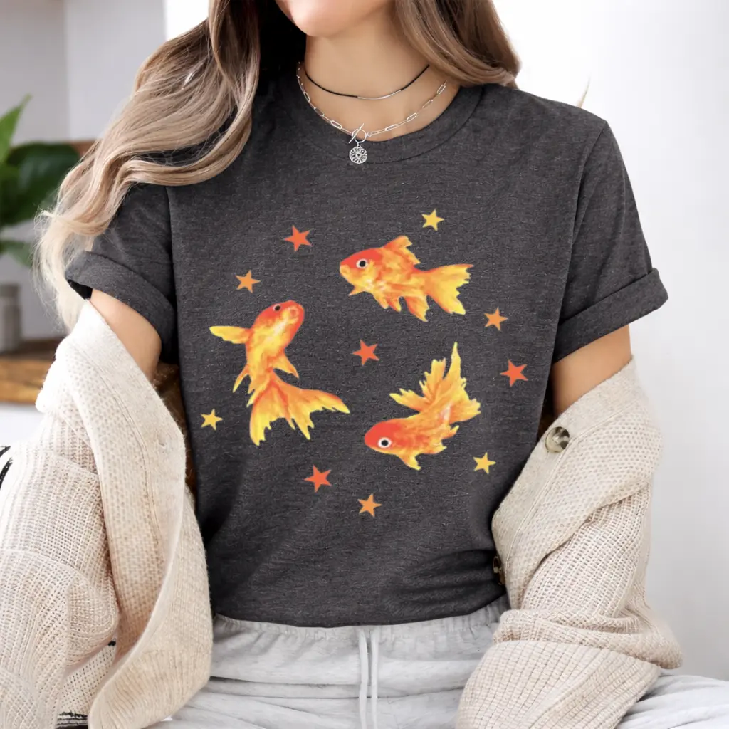 ·Retro Cool Vintage Top: Dive into the nostalgic vibes with this Y2K Goldfish Star Aesthetic T-Shirt. Perfect for those who love a grunge beachy style. This tee is a must-have for your retro wardrobe.