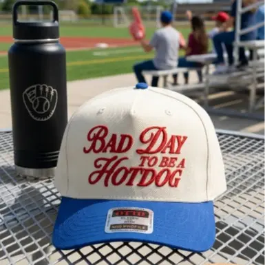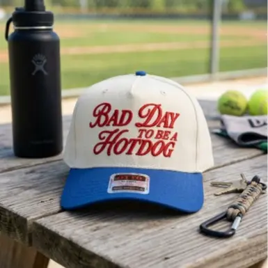 Funny BBQ Hat – “Bad Day To Be a Hotdog” Embroidered Cap, Retro Trucker Hat, Food Meme Gift, Gag Gift Idea