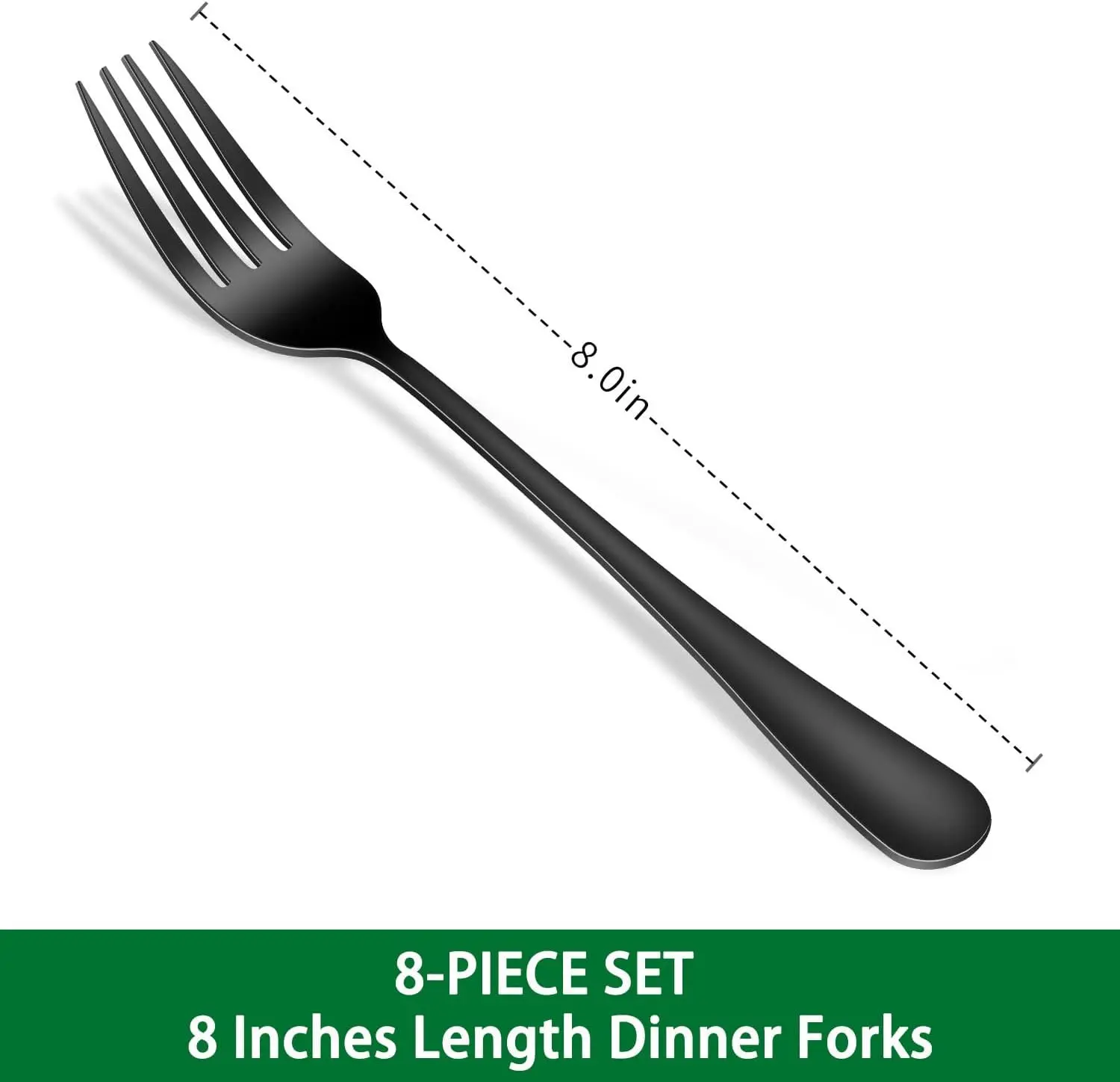 Black Dinner Forks Set, 8-Piece 8 Inches Food-Grade Stainless Steel Silverware Forks
