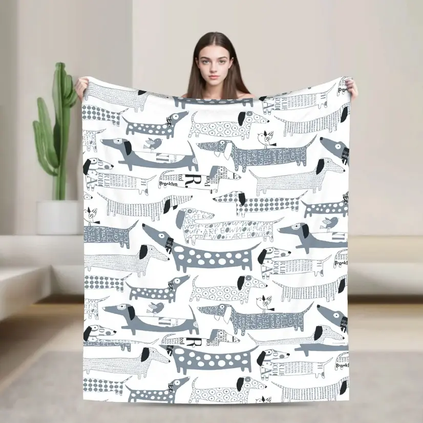 Designed for convenience, this blanket is quick-drying and easy to maintain. The ultra-soft fuzzy flannel holds up well against repeated washing without losing its vibrant dachshund print clarity or softness, ensuring long-lasting quality for everyday use.