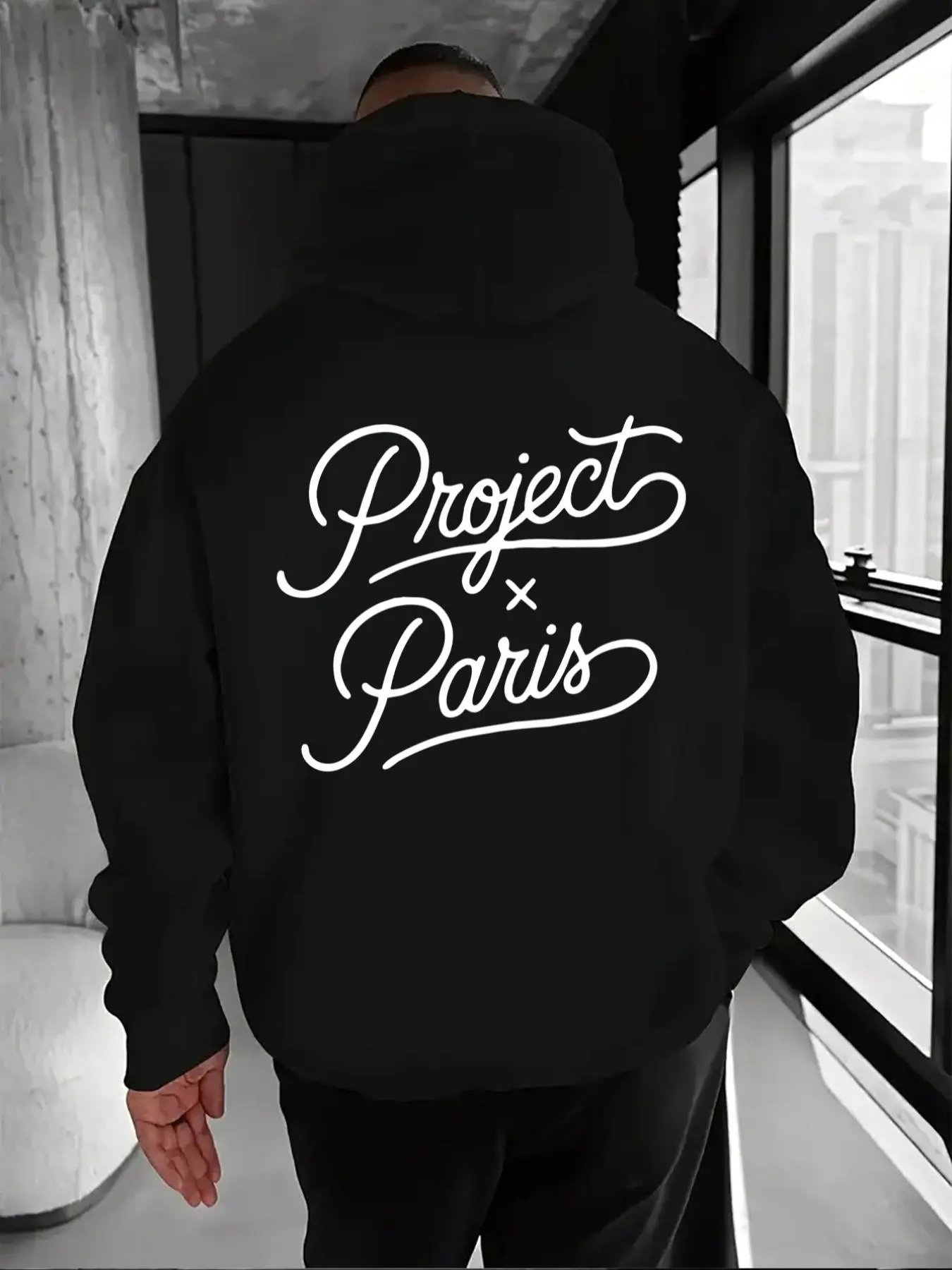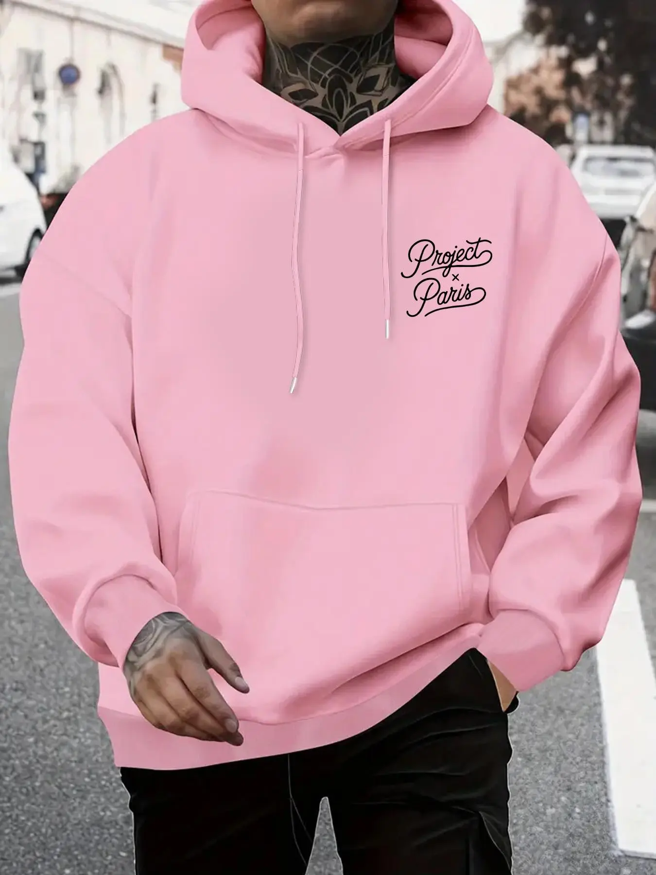 Men's French Trend Hoodie, Project X Paris Artistic Letter Print, Soft Fabric, Casual Fall & Winter Wear, Street Style