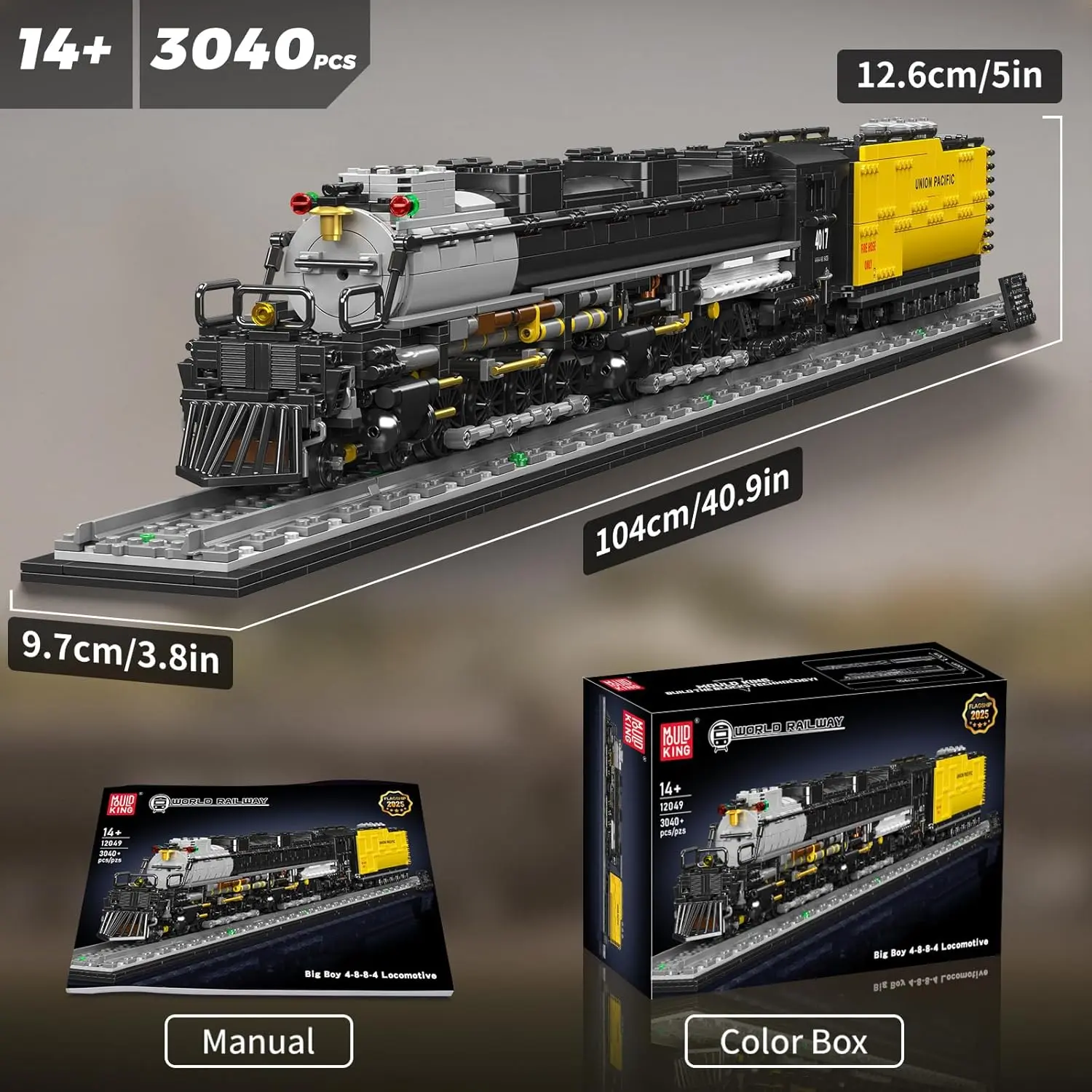 ·【MOC Big Boy Steam Locomotive Replica】Faithfully recreates the legendary Union Pacific Big Boy 4-8-8-4 articulated steam locomotive in stunning detail. With 3040 premium pieces and a custom display base, this impressive scale model (over 40 inches long when assembled) is the ultimate showpiece for serious train collectors and adult builders.