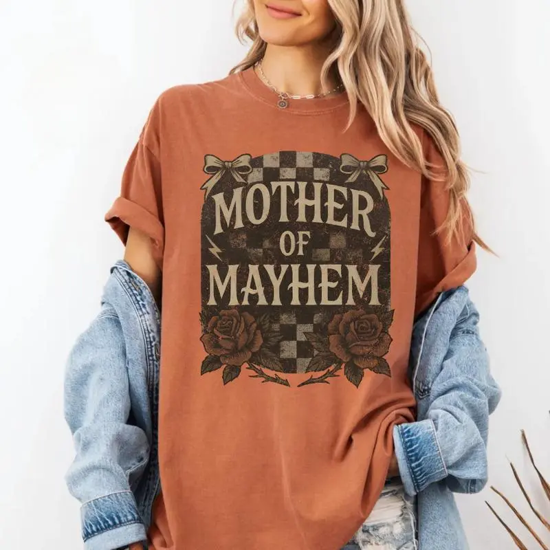 Mother Of Mayhem TShirt, Edgy Mom Shirt For Cool Mom Gift, Funny Mothers Day Tshirt, Trendy Comfort Colors Tired Mom Top Badass Mama Graphic Tee