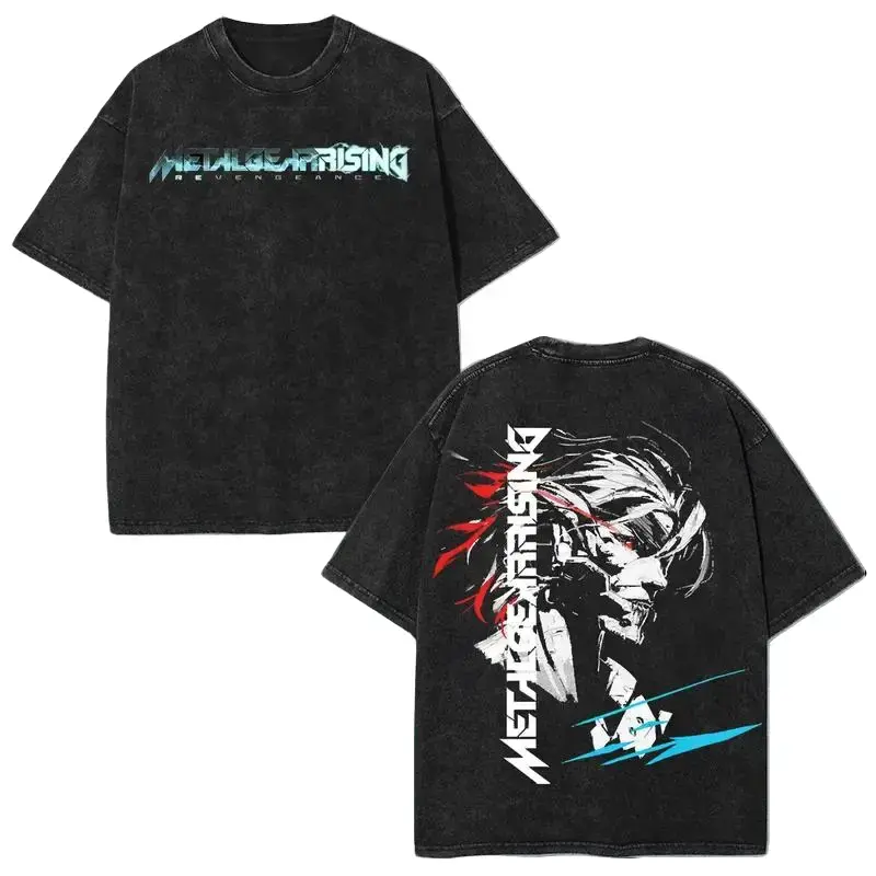 Metal Gear Rising: Revengeance Washed Tshirt 2 Sided Cotton unisex game movie Menswear Casual Tops 90s graphic tees Seamless