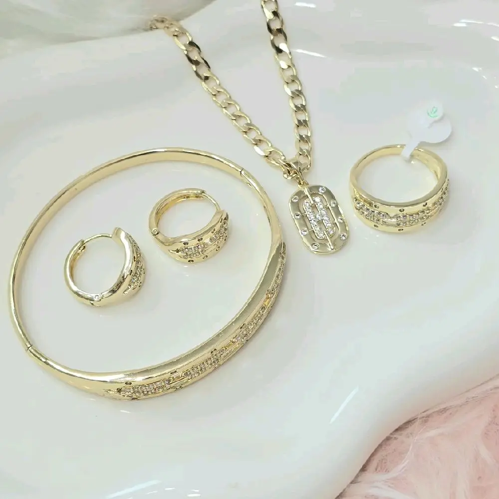 SET Anillo talla 9 Cadena 20 inches Bangle 7-7.5 inch y pequeñas argollas. Laminado de alta calidad