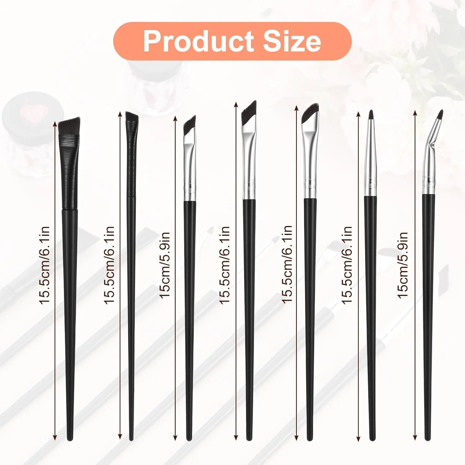 This set includes 7 ultra-thin eyeliner brushes, ideal for precise application. Each brush is designed for angled use, enhancing your eyeliner and eyebrow makeup. Perfect for concealing and defining eyebrows, these brushes offer versatility in your makeup routine.
