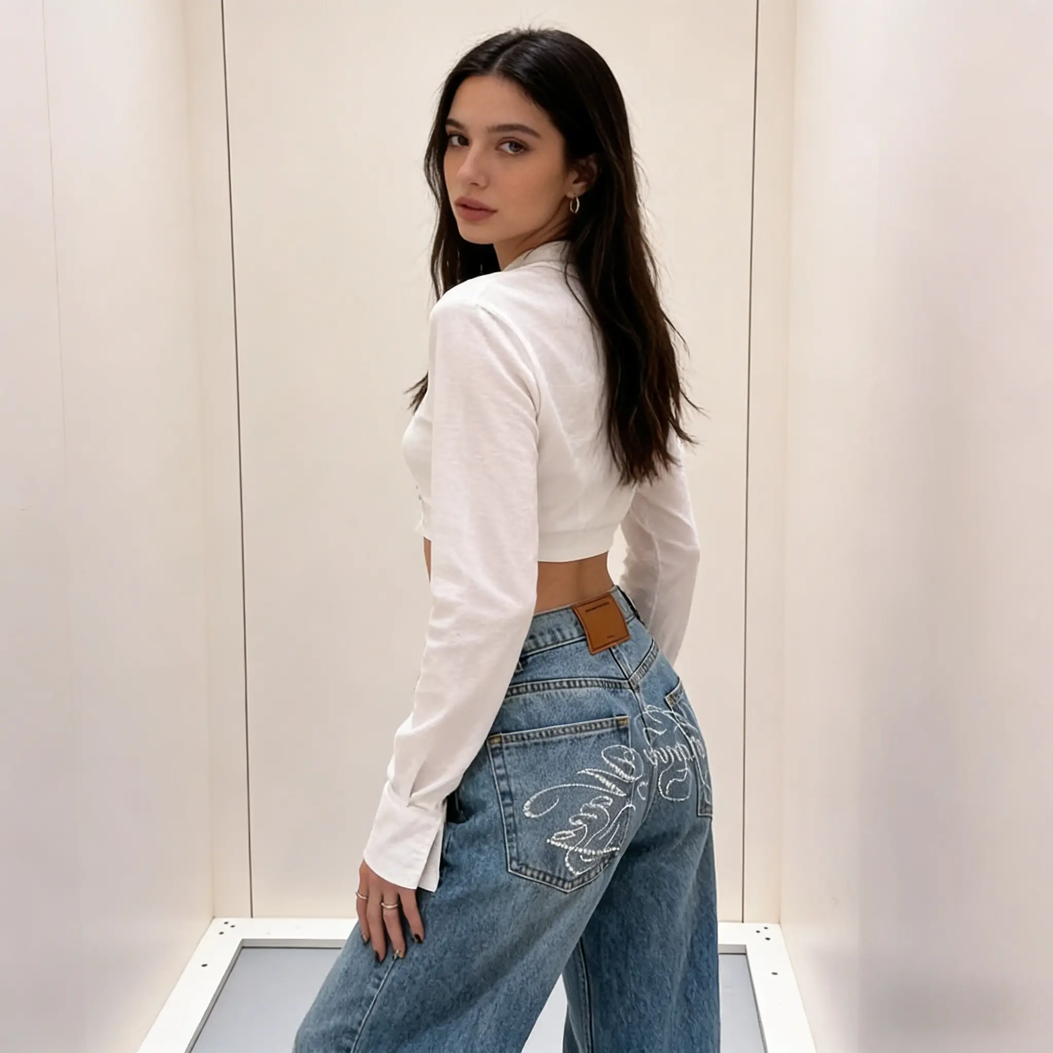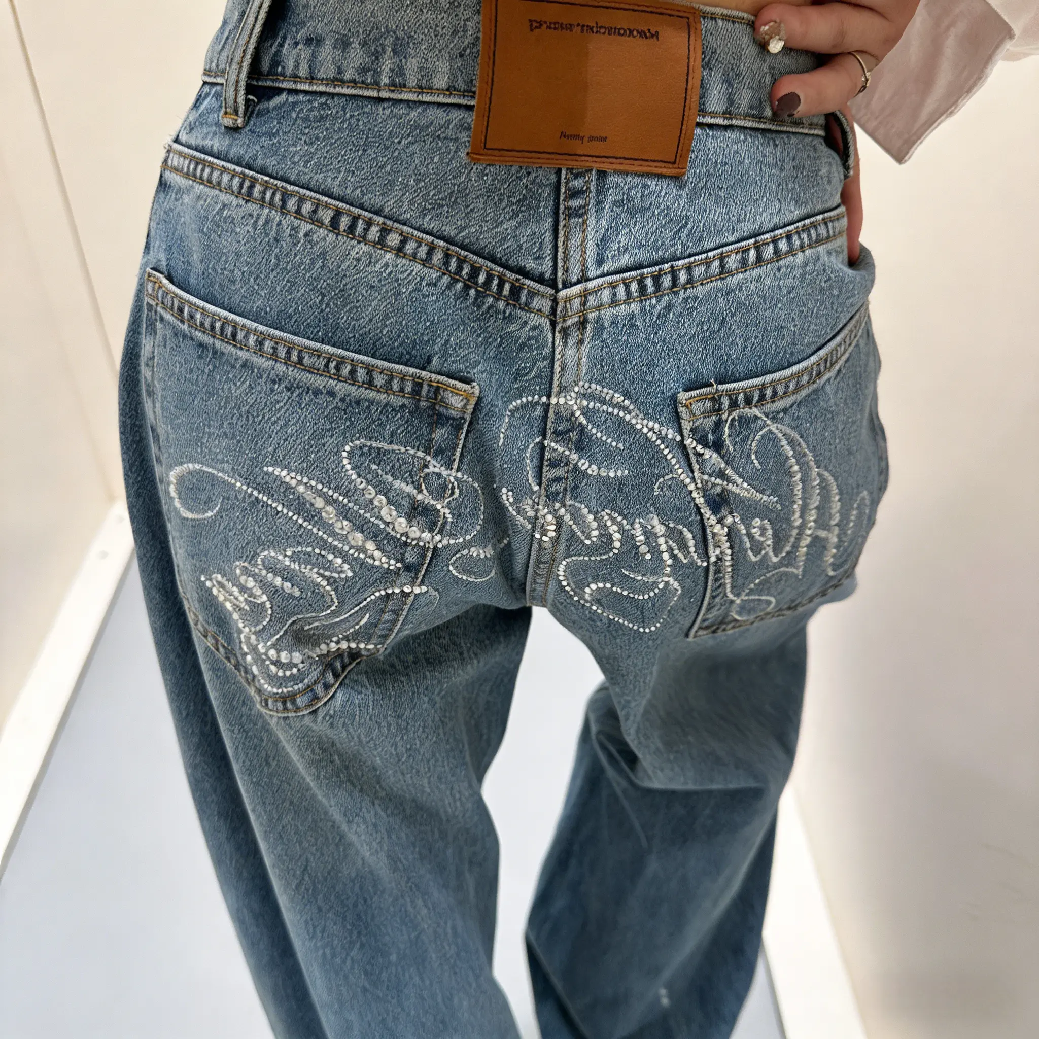 ·Y2K Influence: Embrace the Y2K trend with these rhinestone embroidered jeans, adding a unique flair to your wardrobe. 🌟