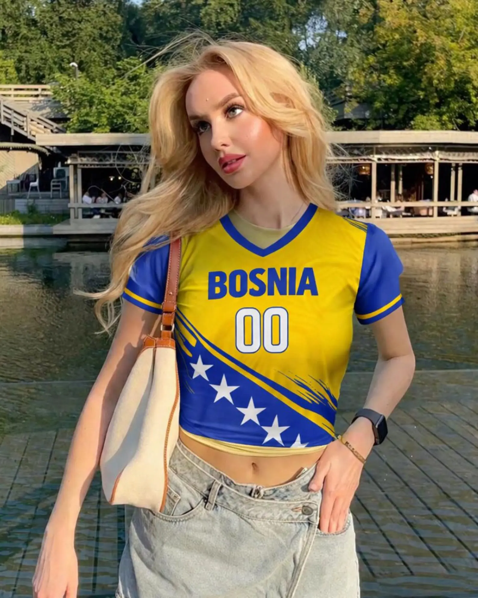 5. Bosnia Soccer Crop Top Jersey Custom Name Number Women Mesh Football Fan Shirt