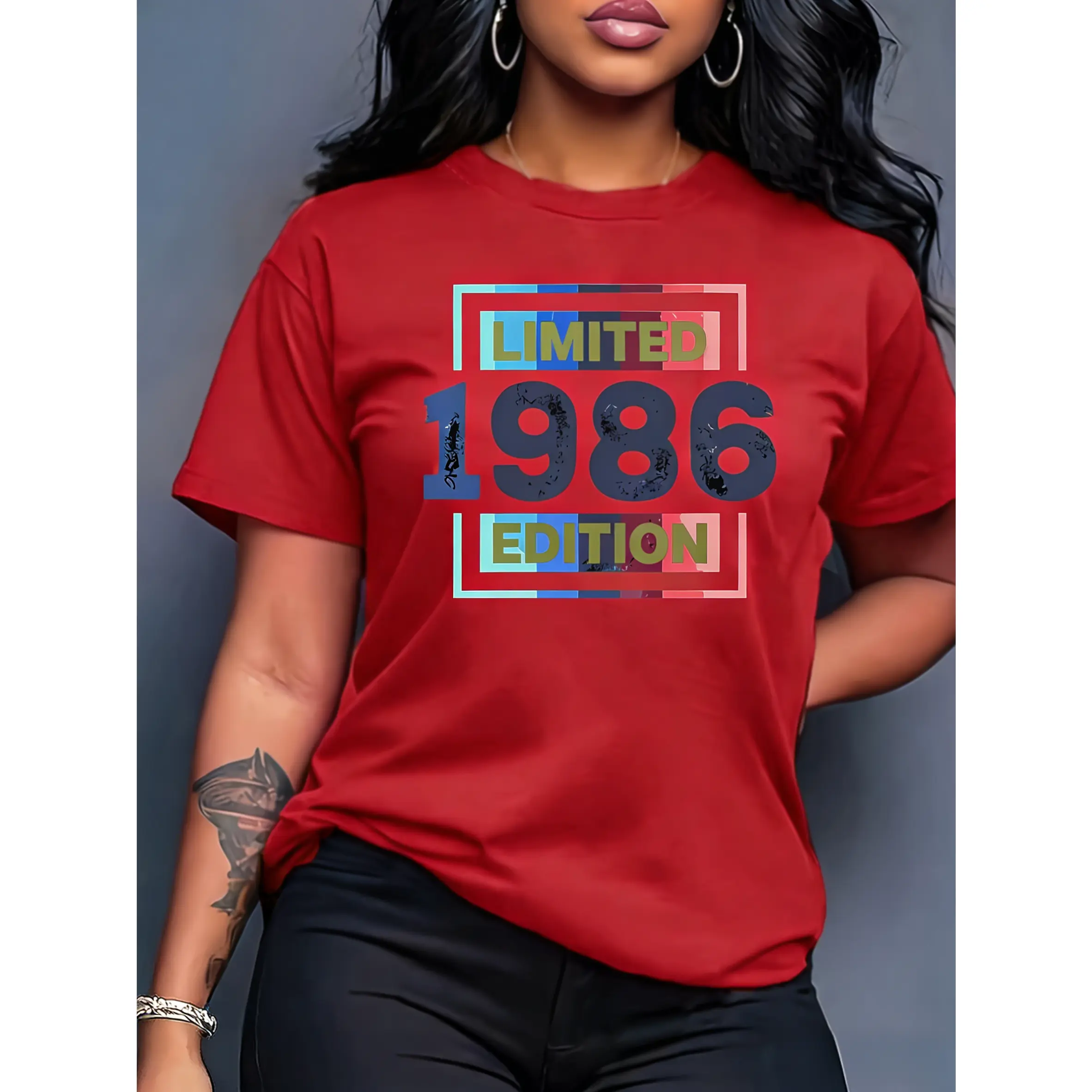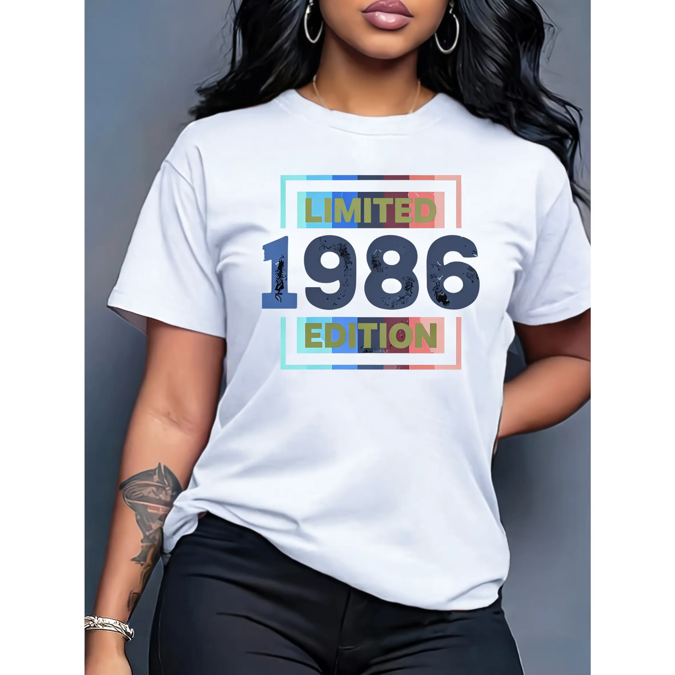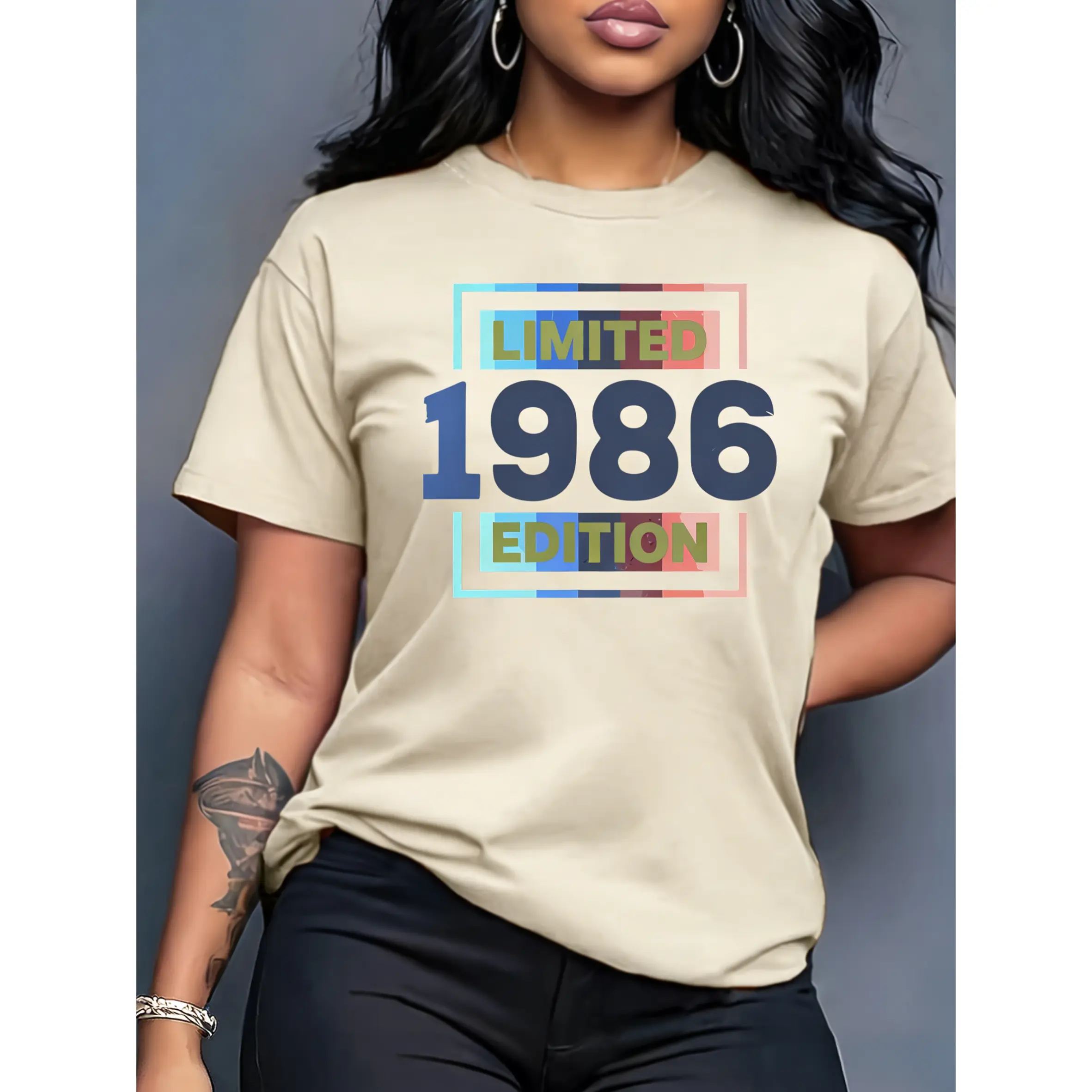 100% cotton women's short-sleeve top "LIMITED 1986 EDITION" vintage-style printed round neck, suitable for spring, summer, and autumn, fashionable and versatile women's top