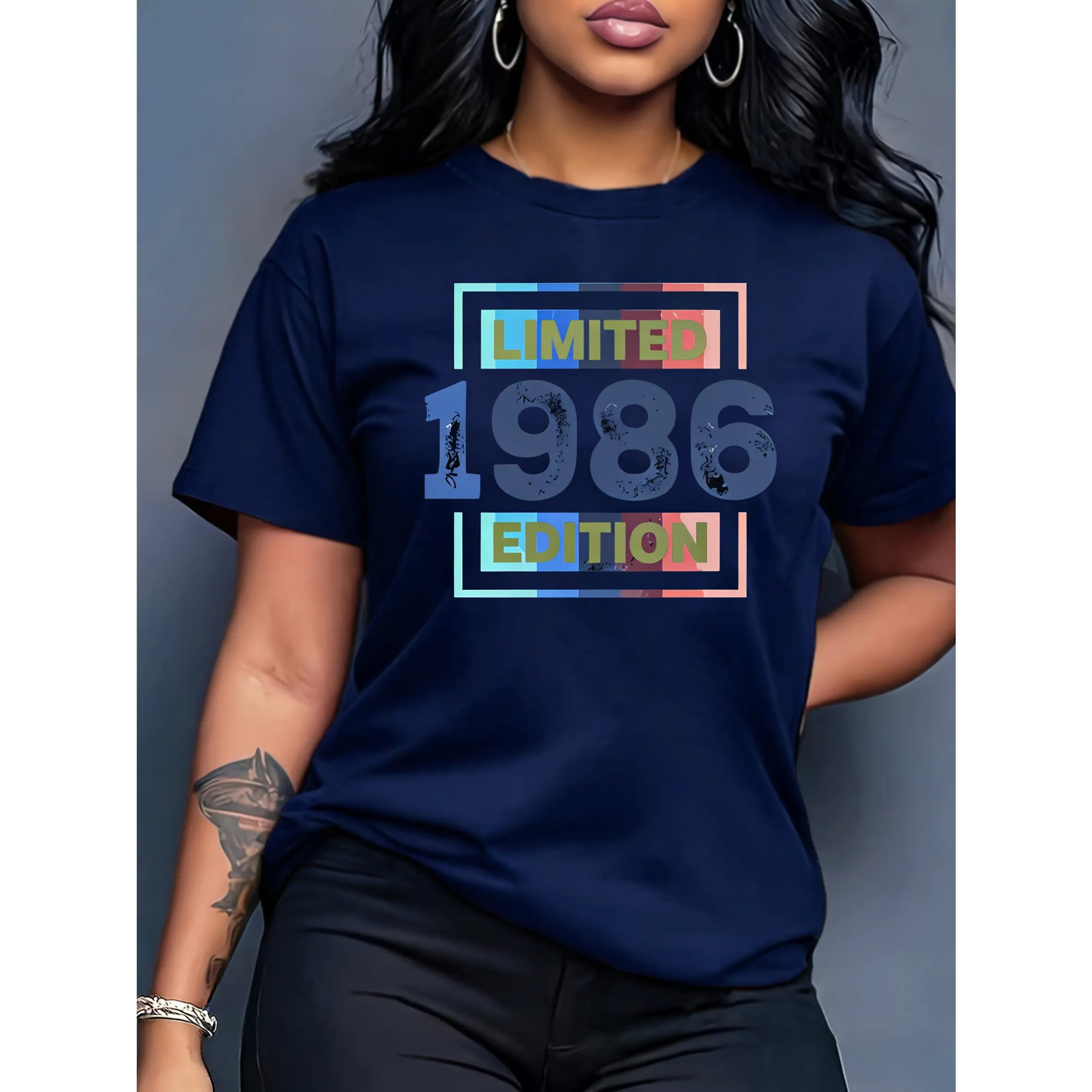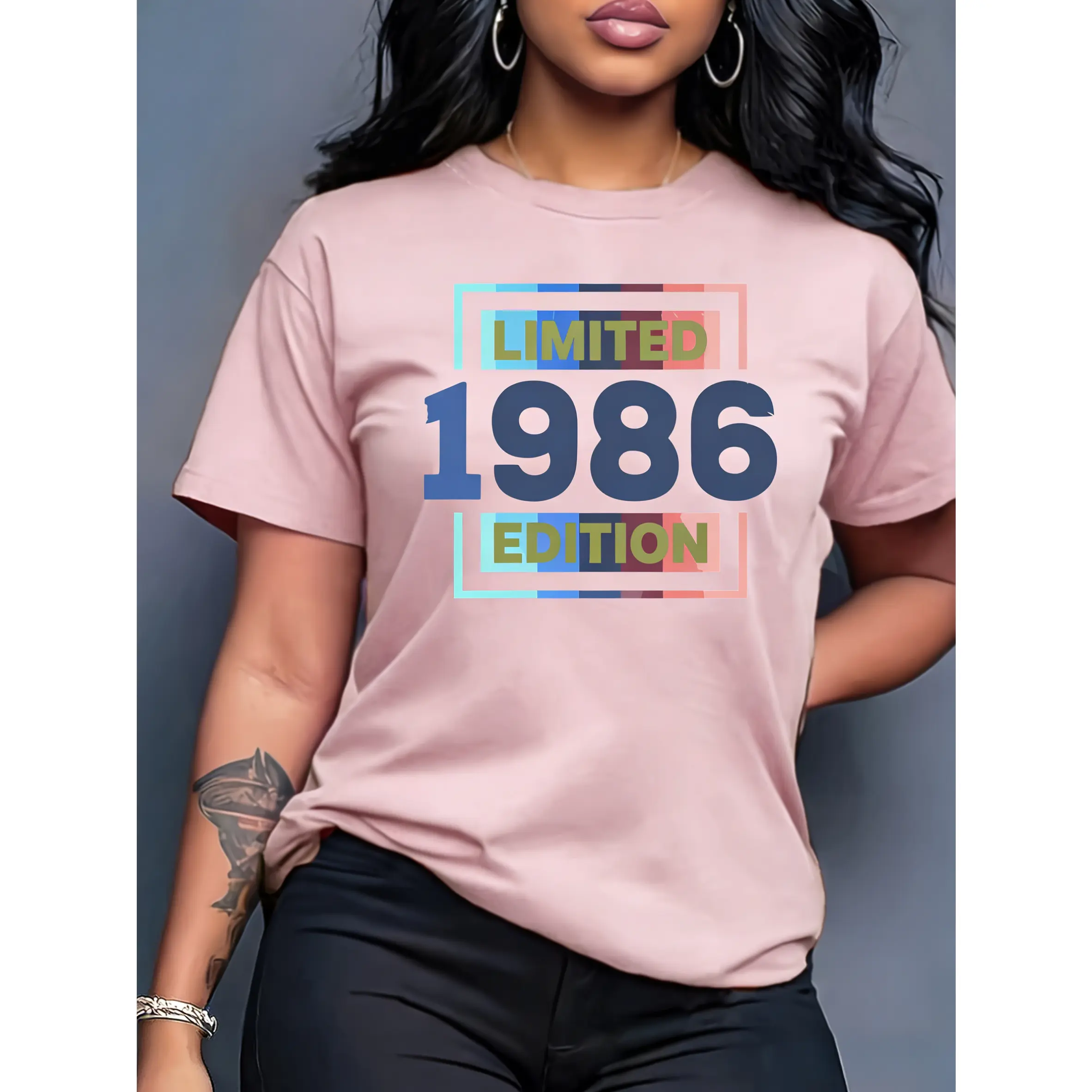 5. 100% cotton women's short-sleeve top "LIMITED 1986 EDITION" vintage-style printed round neck, suitable for spring, summer, and autumn, fashionable and versatile women's top