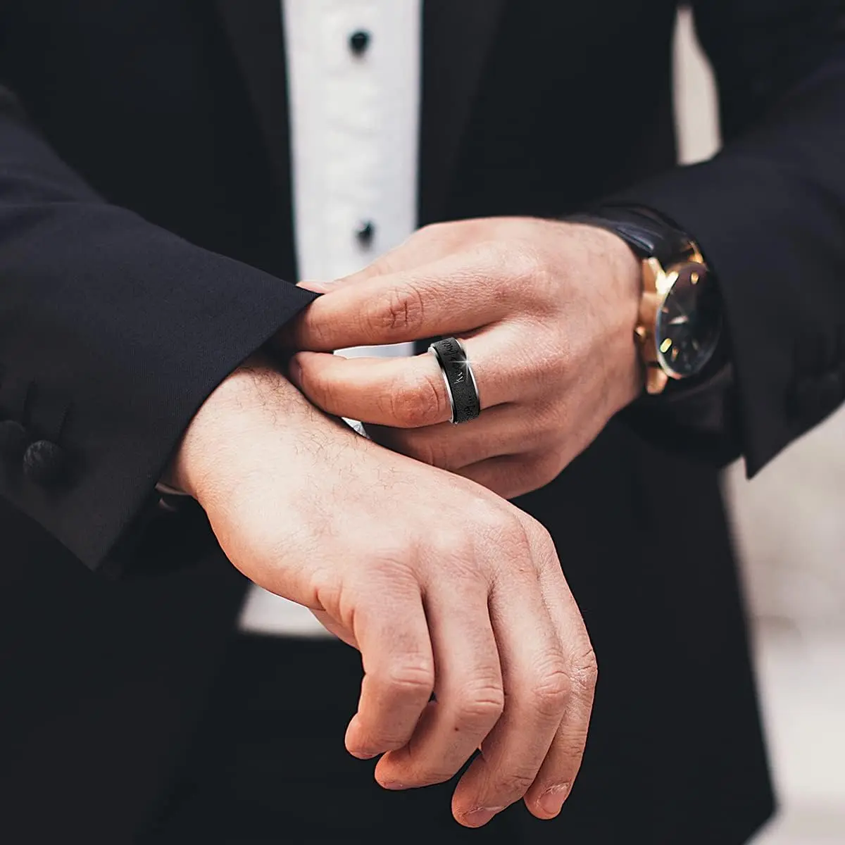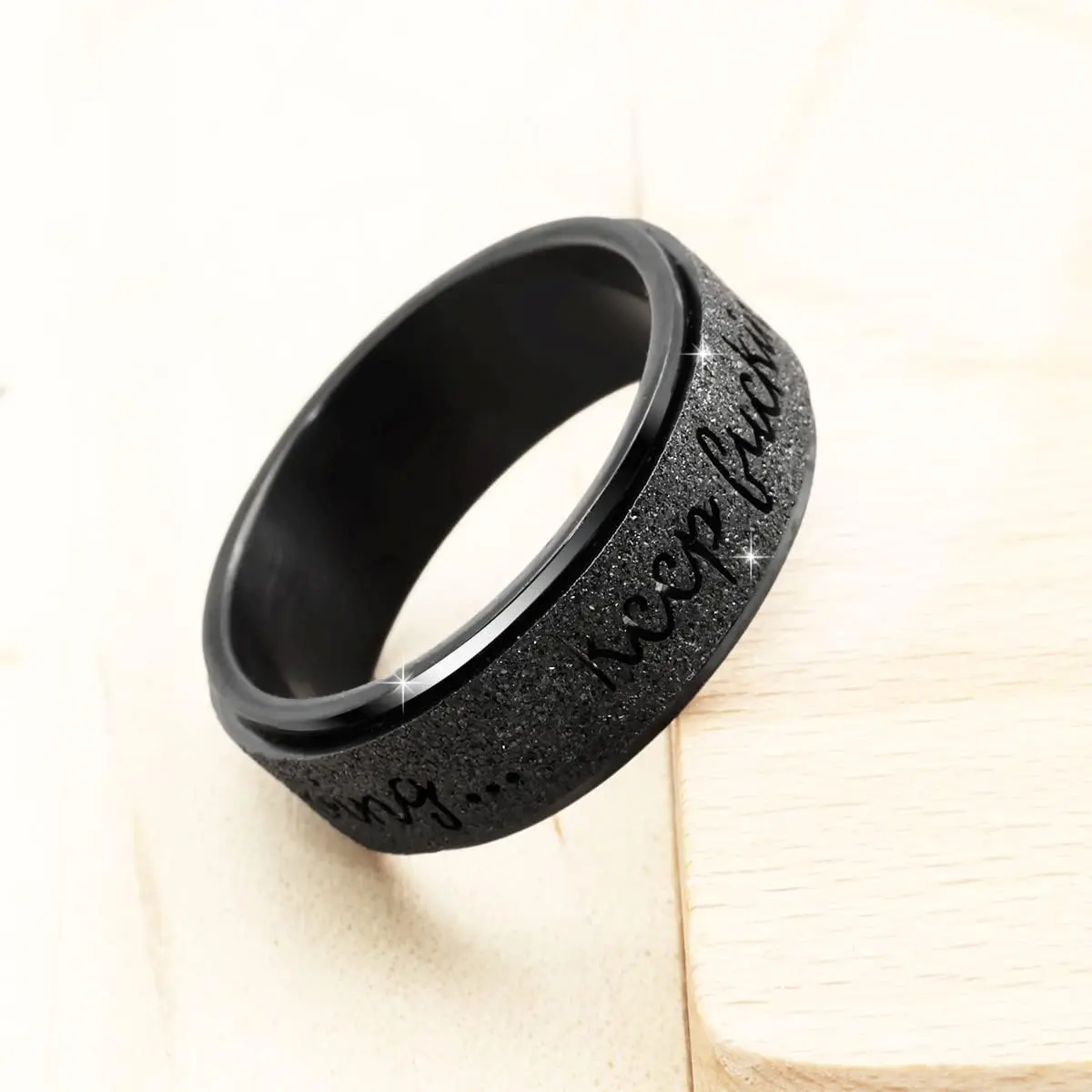 ·The fidget spinner ring made of titanium stainless steel, hand polished surface, high light shine and sand blasted outer, width:8mm(5/16").