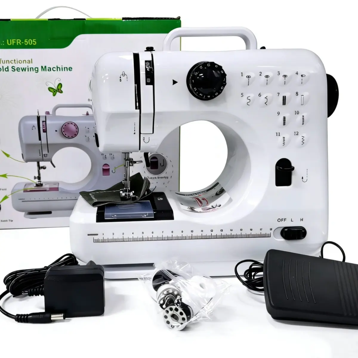 ·Compact 505 mini desktop sewing machine at about 28*24cm with lockstitch and buttonhole functions