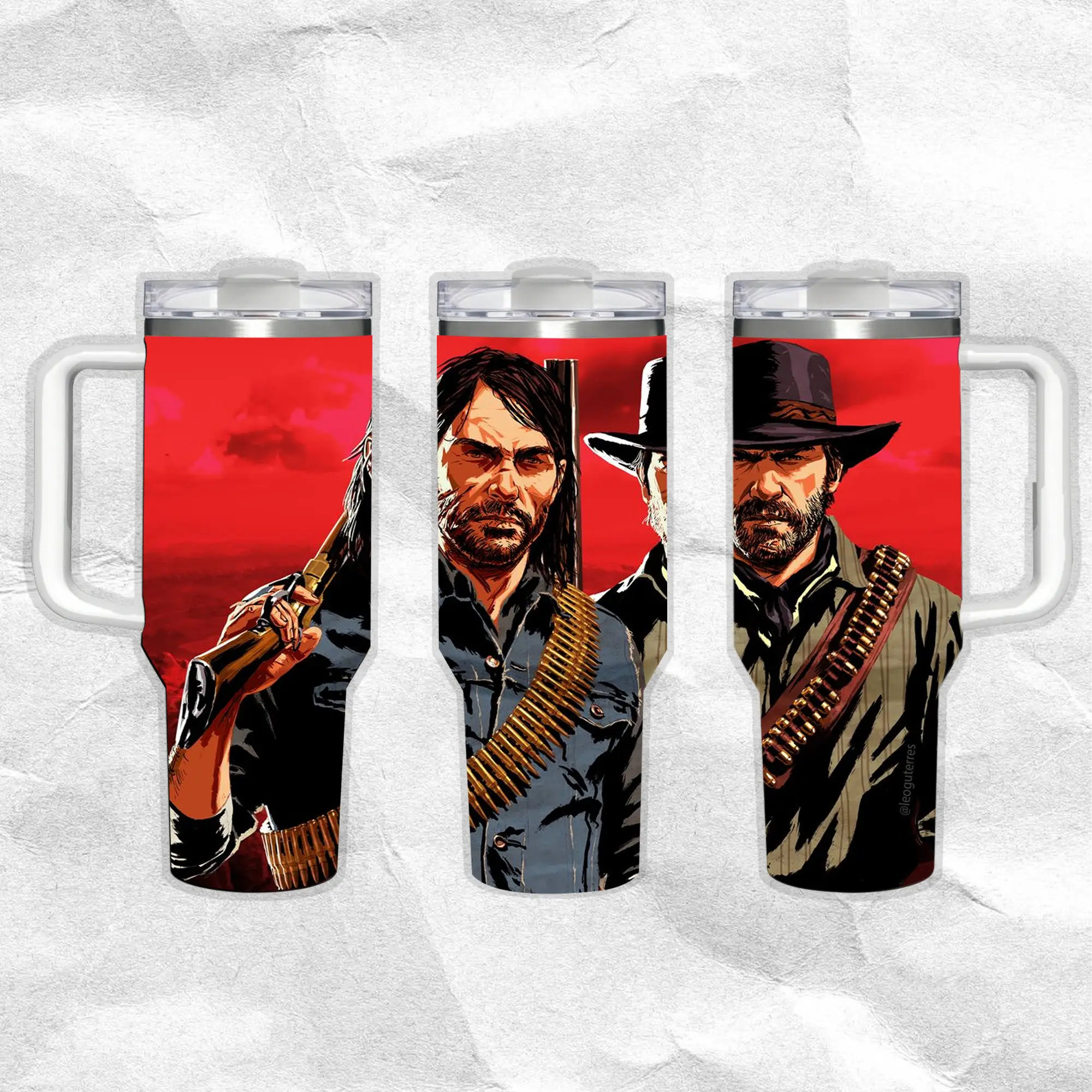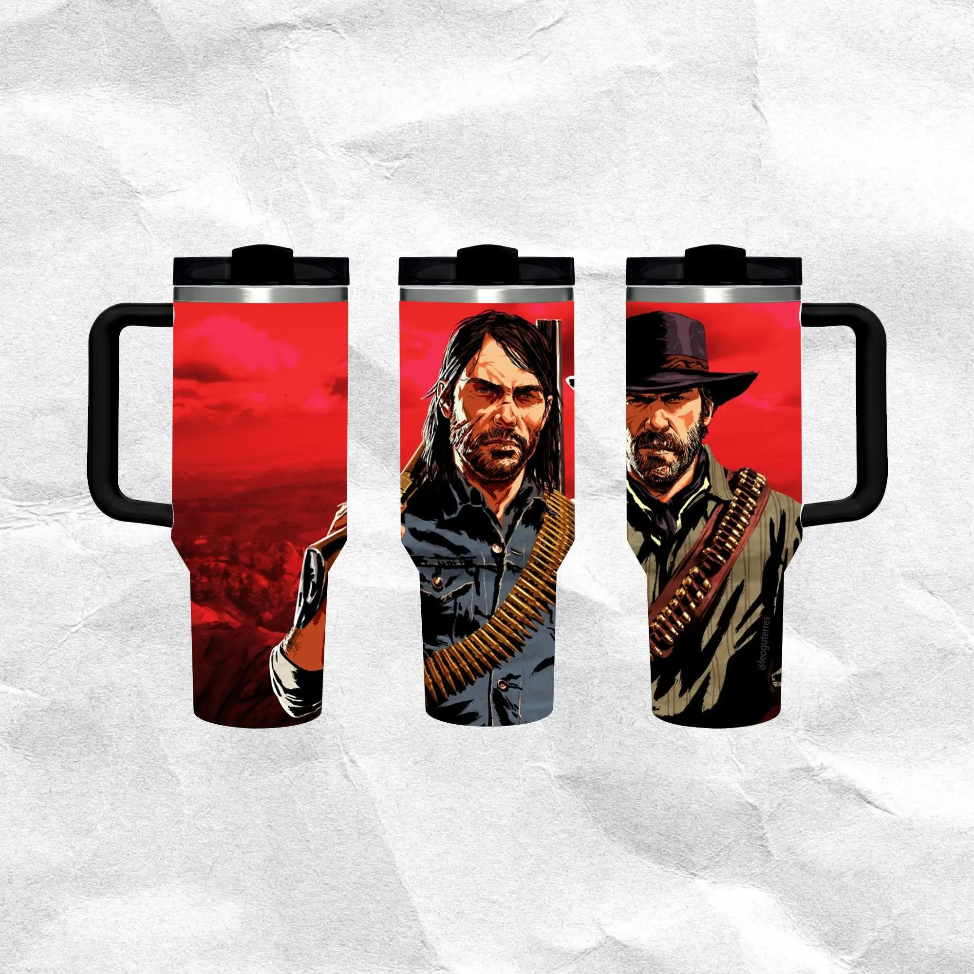 Arthur Morgan & John Marston - Red Dead Redemption Water Bottle Stainless Steel Thermos Keeps Drinks Hot Cold 24H Portable Travel Mug Gothic Minimal Design Gift for Him Her