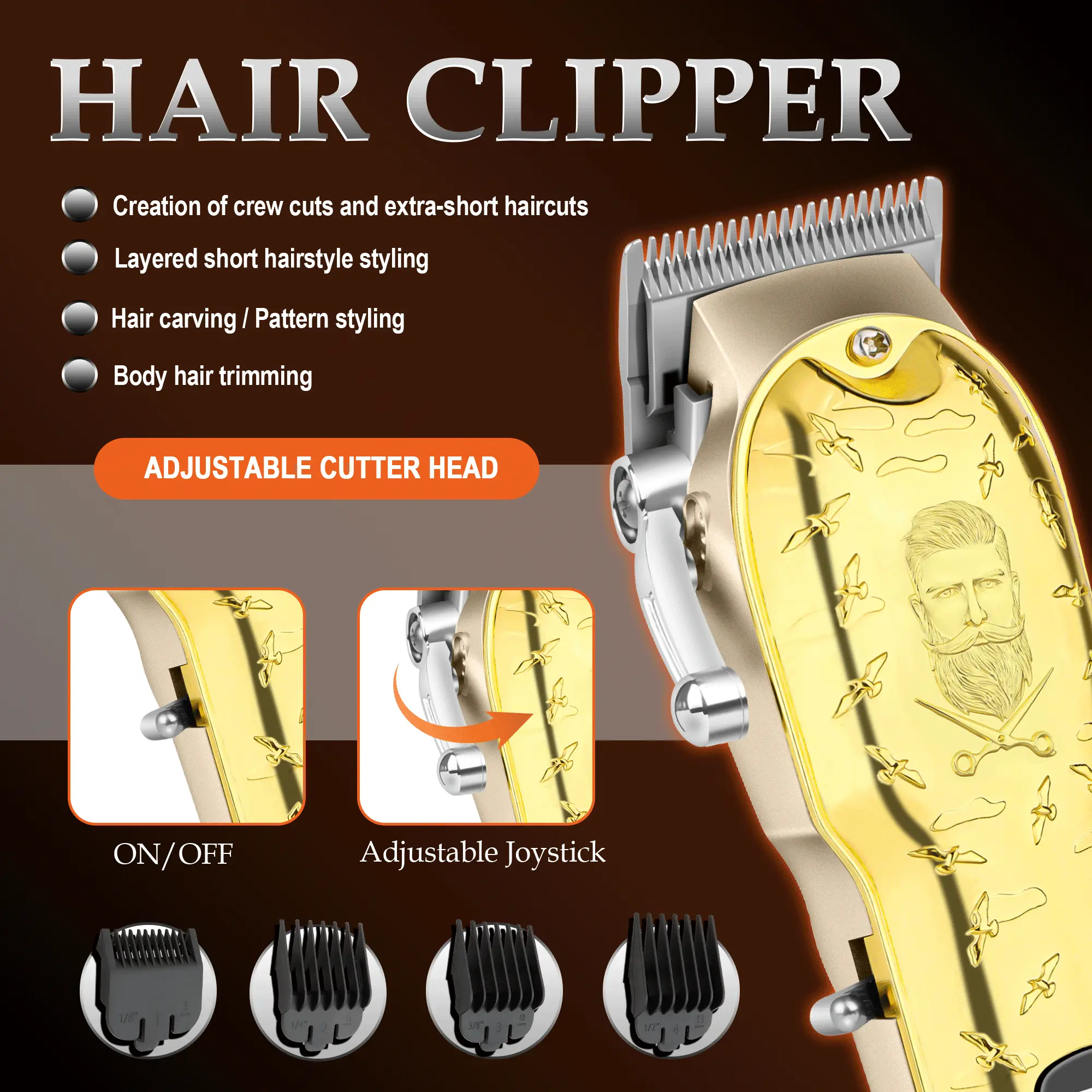 Dear customer. The equipment must be charged at the specified voltage to ensure the best performance of the product, avoid damaging the battery and extend its service life. It is an ideal holiday gift. Before use: Confirm that the knife head is firmly installed and adjust the appropriate limit comb length. Clean the blade head and apply lubricating oil to it to reduce friction.