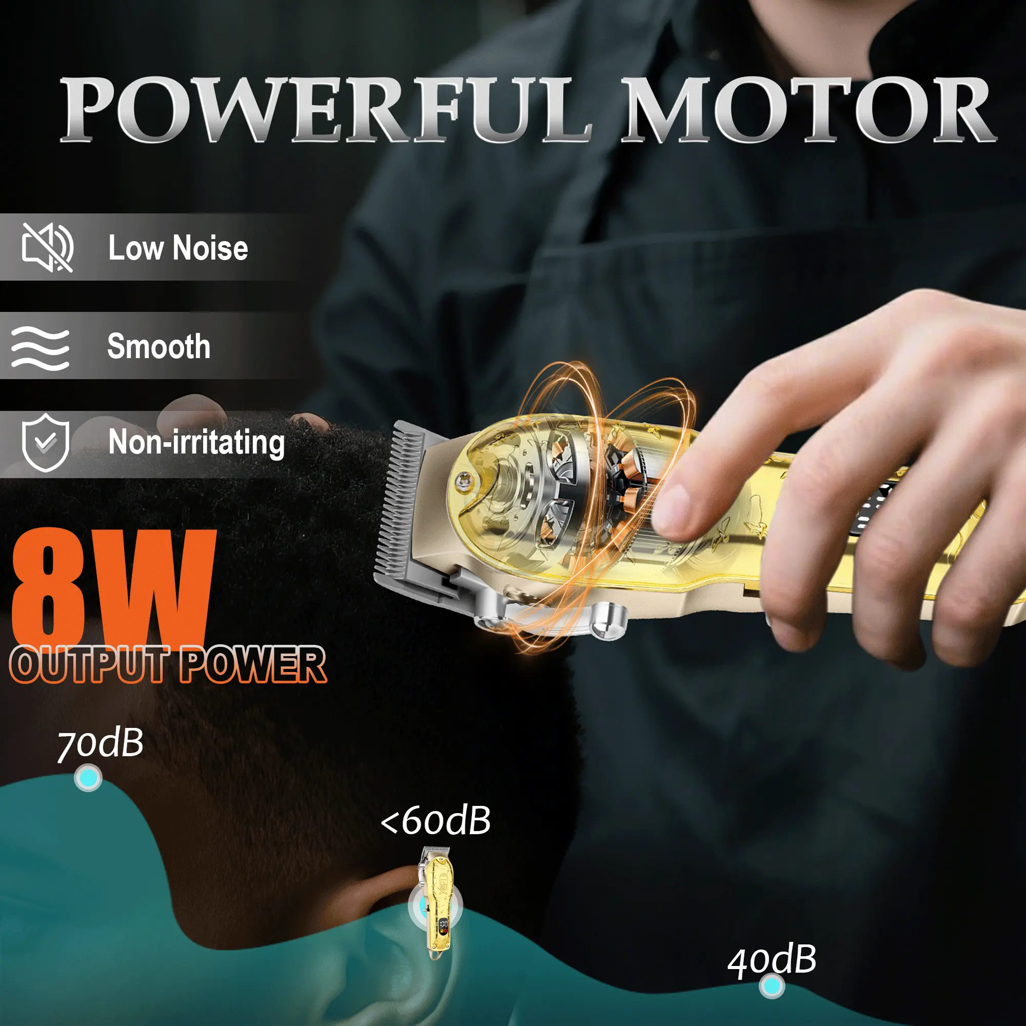 During use: Keep the blade moving parallel to the scalp to avoid pulling on the hair. First, cut the long hair into sections and then trim it finely with a limit comb.