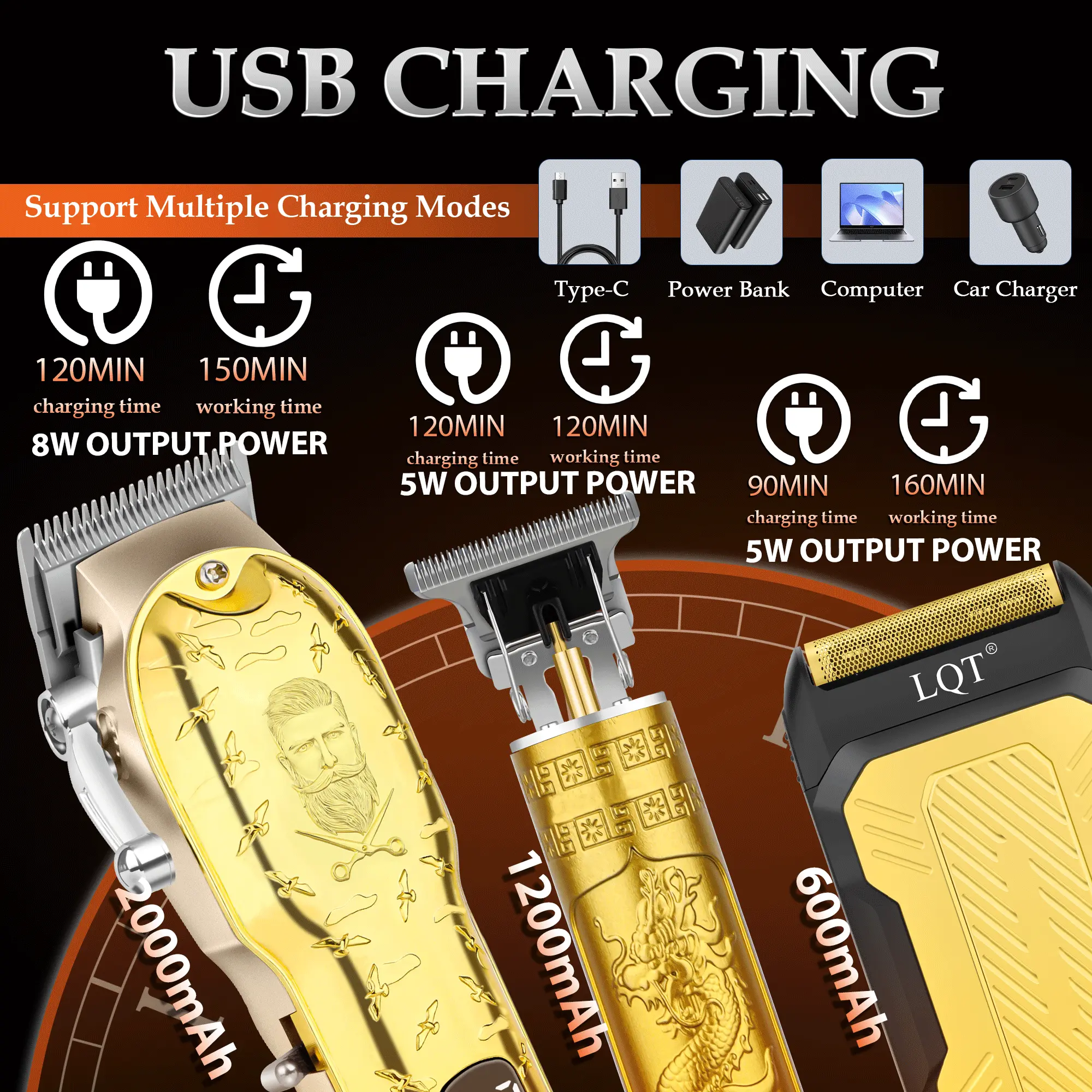 LQT wireless hair clipper Suitable for hair trimming for both adults and children. USB charging. Fashionable design. Hair salon household shaving beauty tools