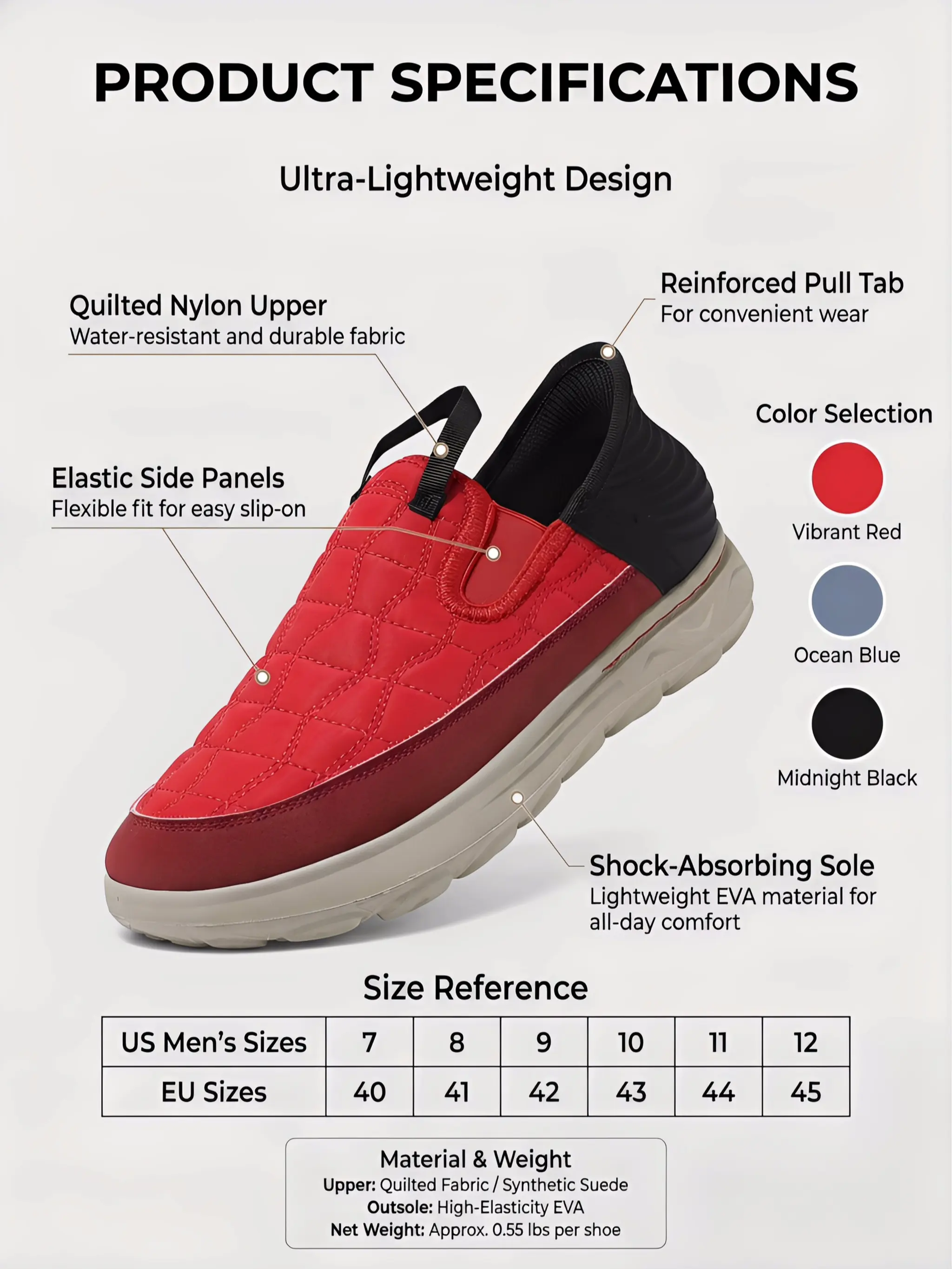 Water-Resistant Unisex Slip-On Shoes, Lightweight EVA Sole, Easy On/Off, Ideal for Daily Wear
