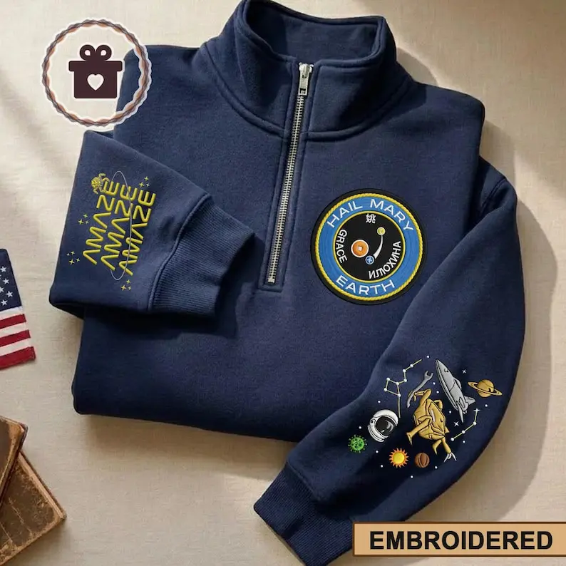 Embroidered Planet Project Hail Mary Quarter Zip, Amaze Amaze Amaze Sweatshirt, Sci-fi Fantasy Bookish Crewneck Shirt, Gift For Her Him