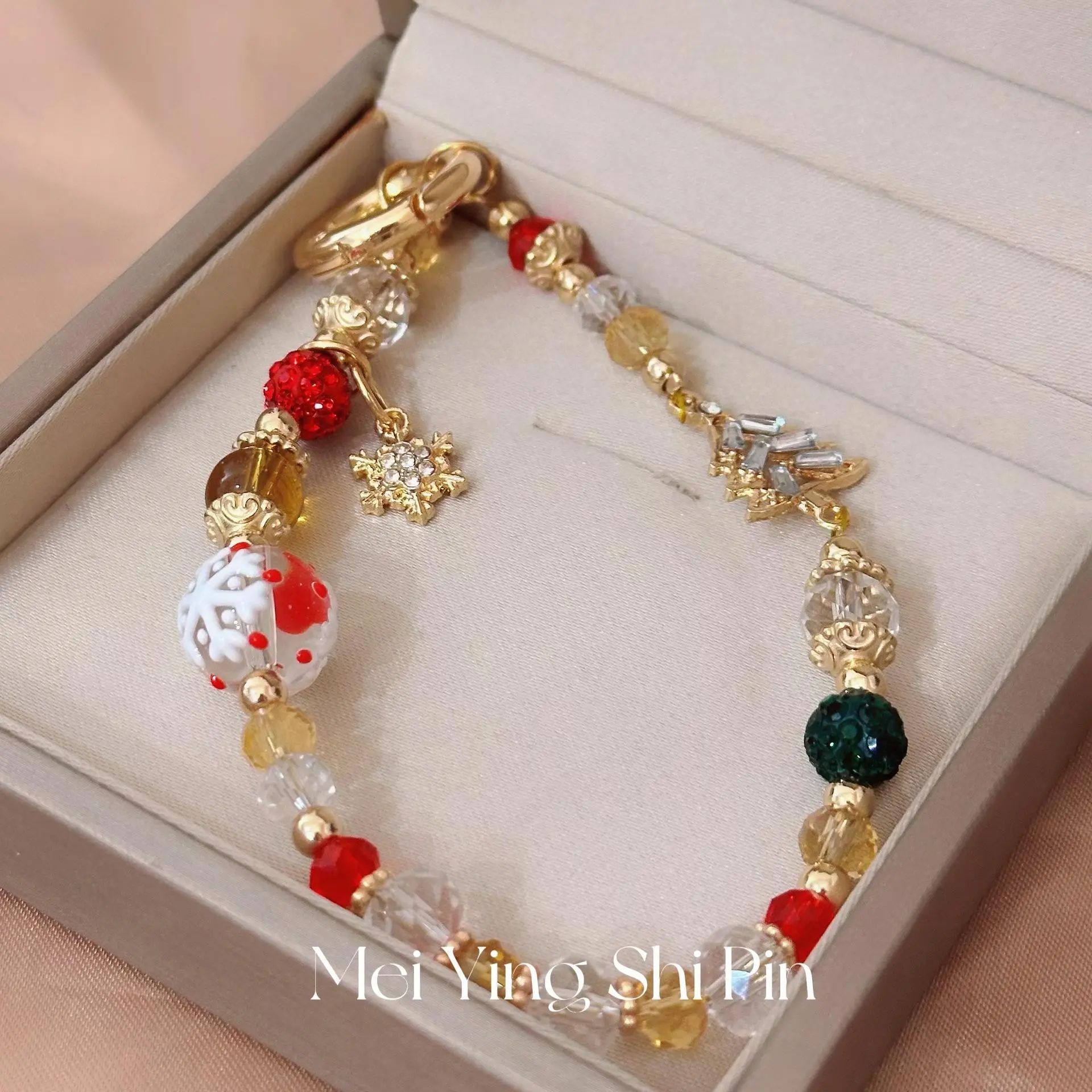 The Green Christmas Tree Bead Phone Strap offers a luxurious and minimalist design, perfect for adding a touch of elegance to your mobile device.