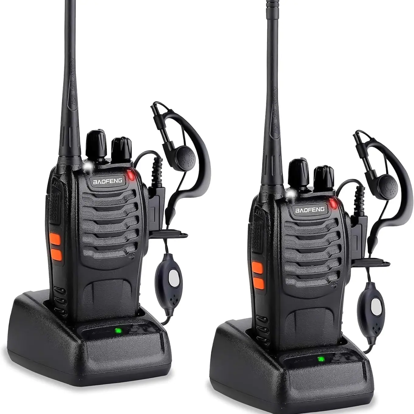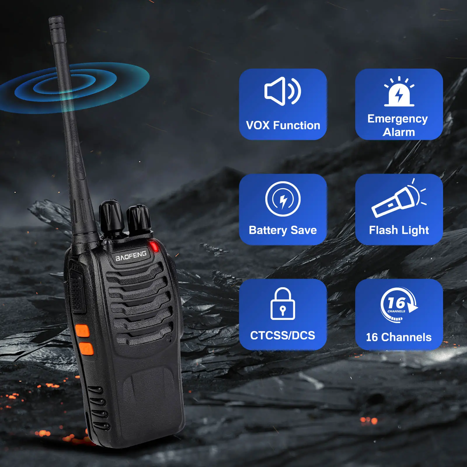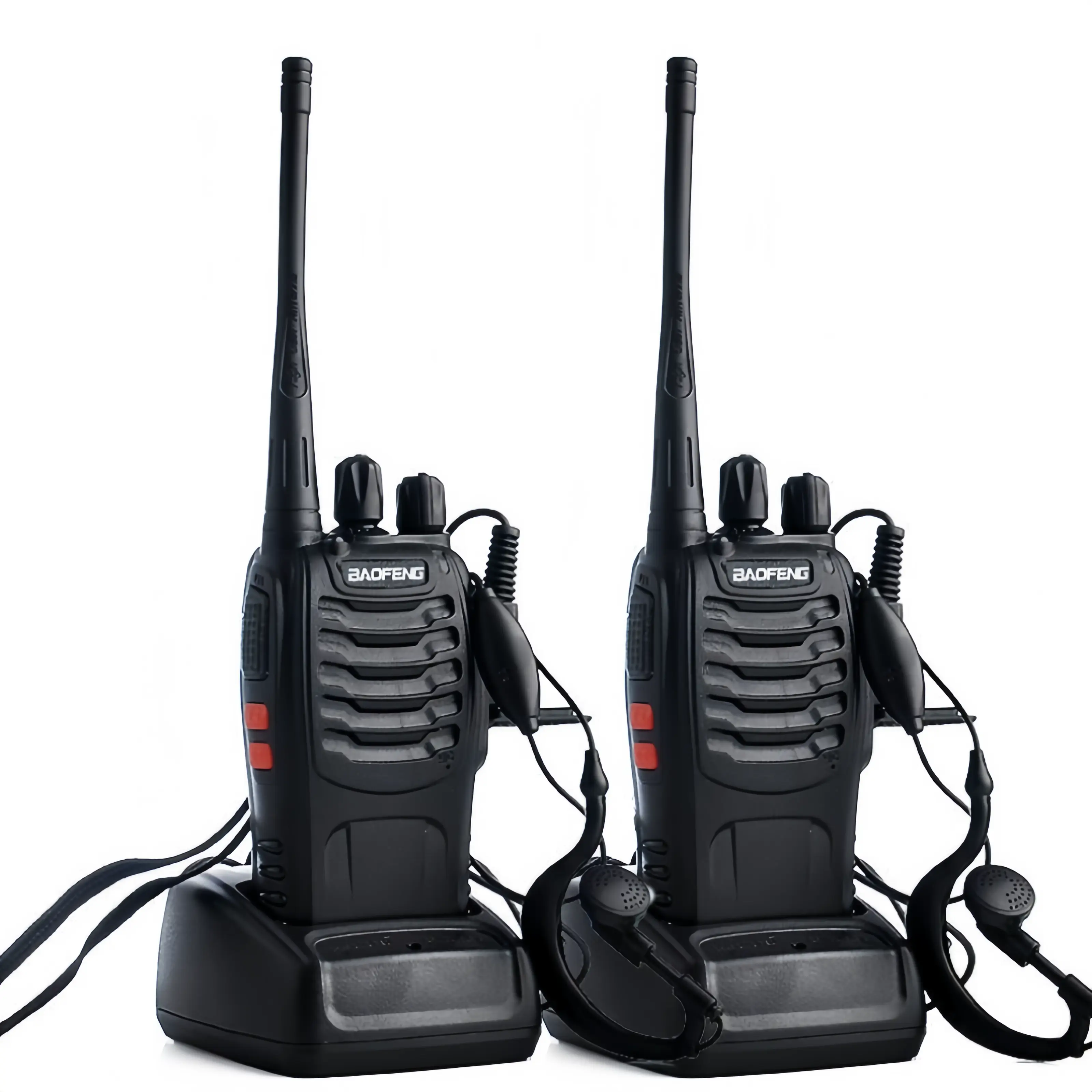 About this product 【Multifunctional】FCC ID: BF-888S, the walkie-talkie rotary knob can select 16 preset channels, allowing any channel to be chosen within the frequency range; each programmable channel can be set with 50 CTCSS tones and 105 CDCSS tones. The walkie-talkie features VOX voice control, scanning, low battery alert, and a night flashlight. The package includes (walkie-talkie, battery pack, charger, belt clip, wrist strap, headset) X2 and a user manual. 【Long-distance Communication】In open areas such as rural, suburban, or seaside locations with no obstructions, the walkie-talkie can reach up to 3 miles. In cities or towns, it typically reaches 0.6-1.2 miles. The actual distance depends on current environmental obstacles. 【Durable Battery】Under normal conditions, the walkie-talkie can last 8-72 hours on a full charge, and continuous use can reach 8-10 hours. Actual time depends on usage frequency;The charging time is 3-4 hours to fully charge, and the battery has a long lifespan.
